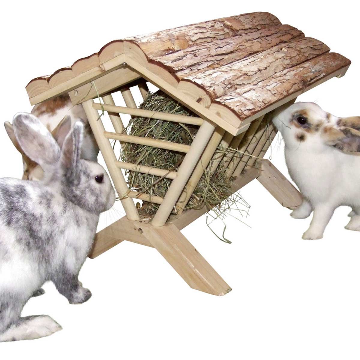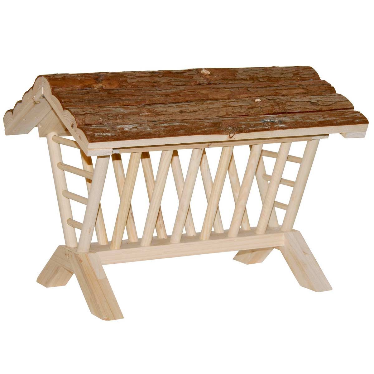 Lettino da fieno nature in legno naturale per conigli. Il fieno o l'erba rimangono freschi e non si sporcano.