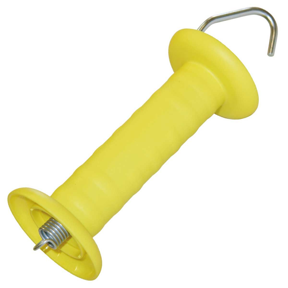 Maniglia per recinto elettrico con gancio e molla di tensione giallo