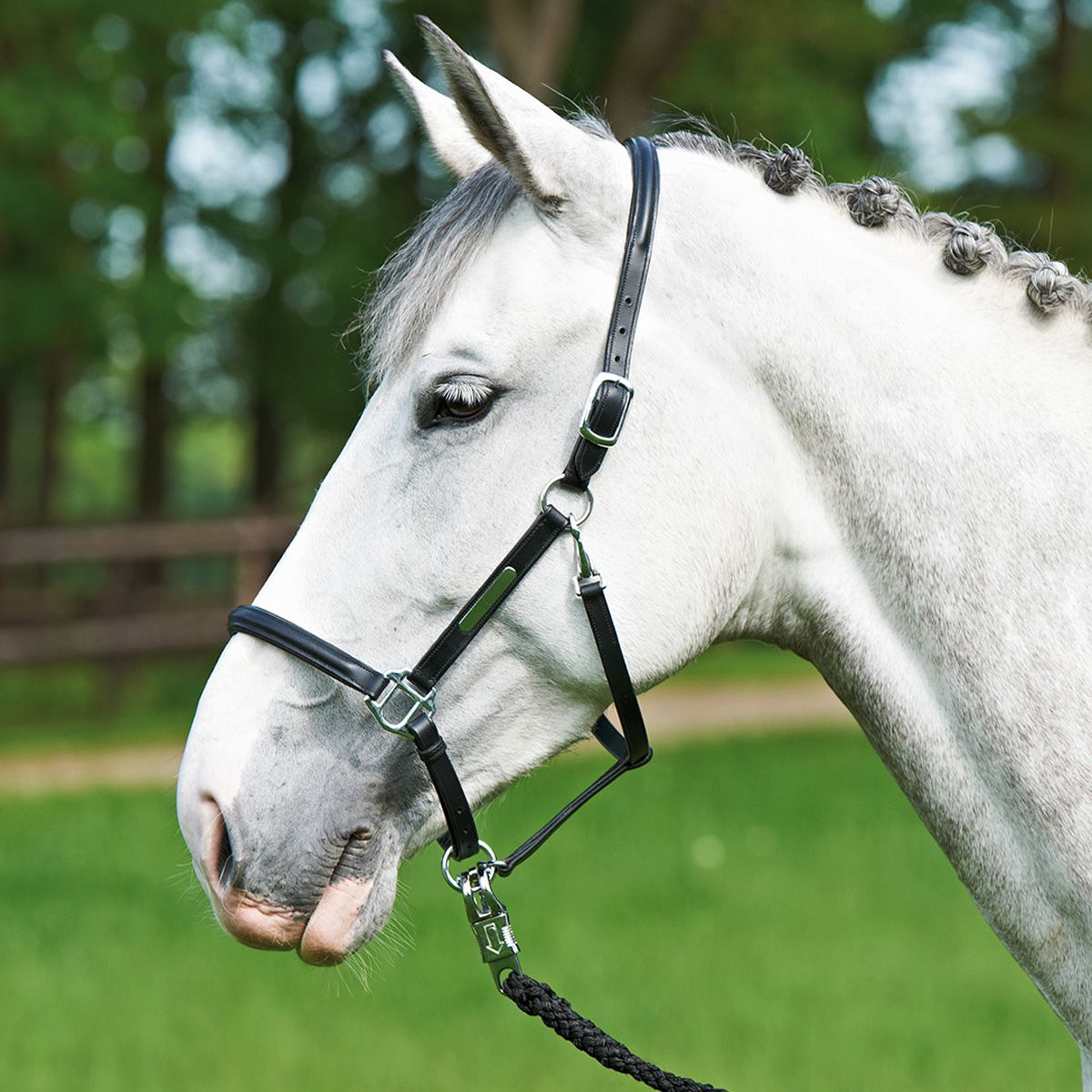 Nobile cavezza realizzata con la migliore piastra metallica in pelle di briglia per le singole incisioni, da allentare e fissare con viti.