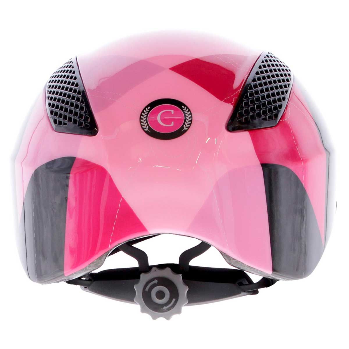 Il casco da equitazione eXite per le giovani generazioni, con un'accattivante stampa a scacchi nei colori di tendenza rosa e viola