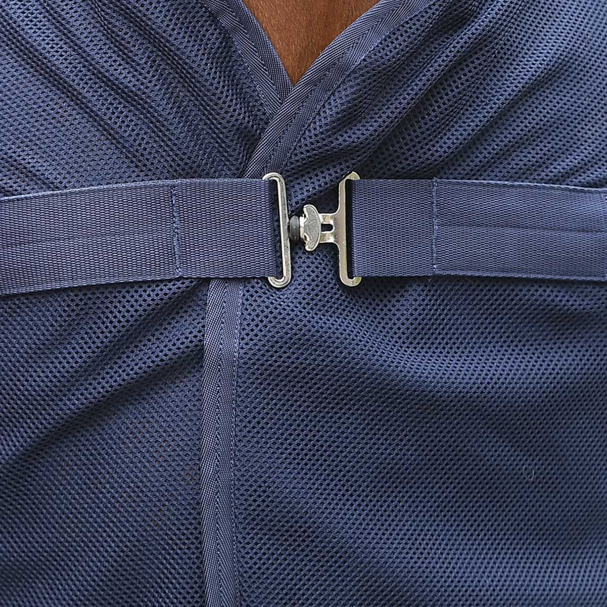 La coperta fly-fly ii da mosca èBUSSE la coperta ideale per sudare e volare nei mesi estivi. La protezione della mosca e la traspirabilità sono combinate in un'unica coperta. La coperta altamente traspirante è realizzata in pile di poliestere ad asciugatura rapida nella zona posteriore, che mantiene anche il cavallo ad una temperatura ottimale. La parte inferiore del tappeto è realizzata in un resistente tessuto a rete che tiene a bada le pulci e altri insetti che mordono. La fibbia a T del petto e il cinturino elastico integrato e staccabile offrono la migliore tenuta. Il morbido garrese e l'inserto elastico offrono un elevato comfort per il tappeto da cavallo.