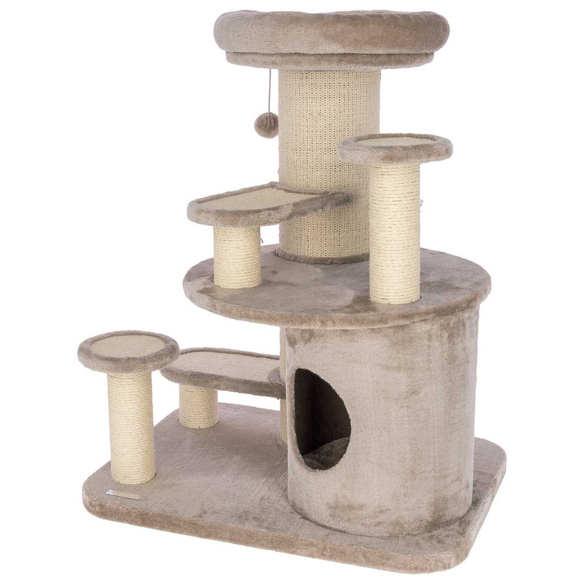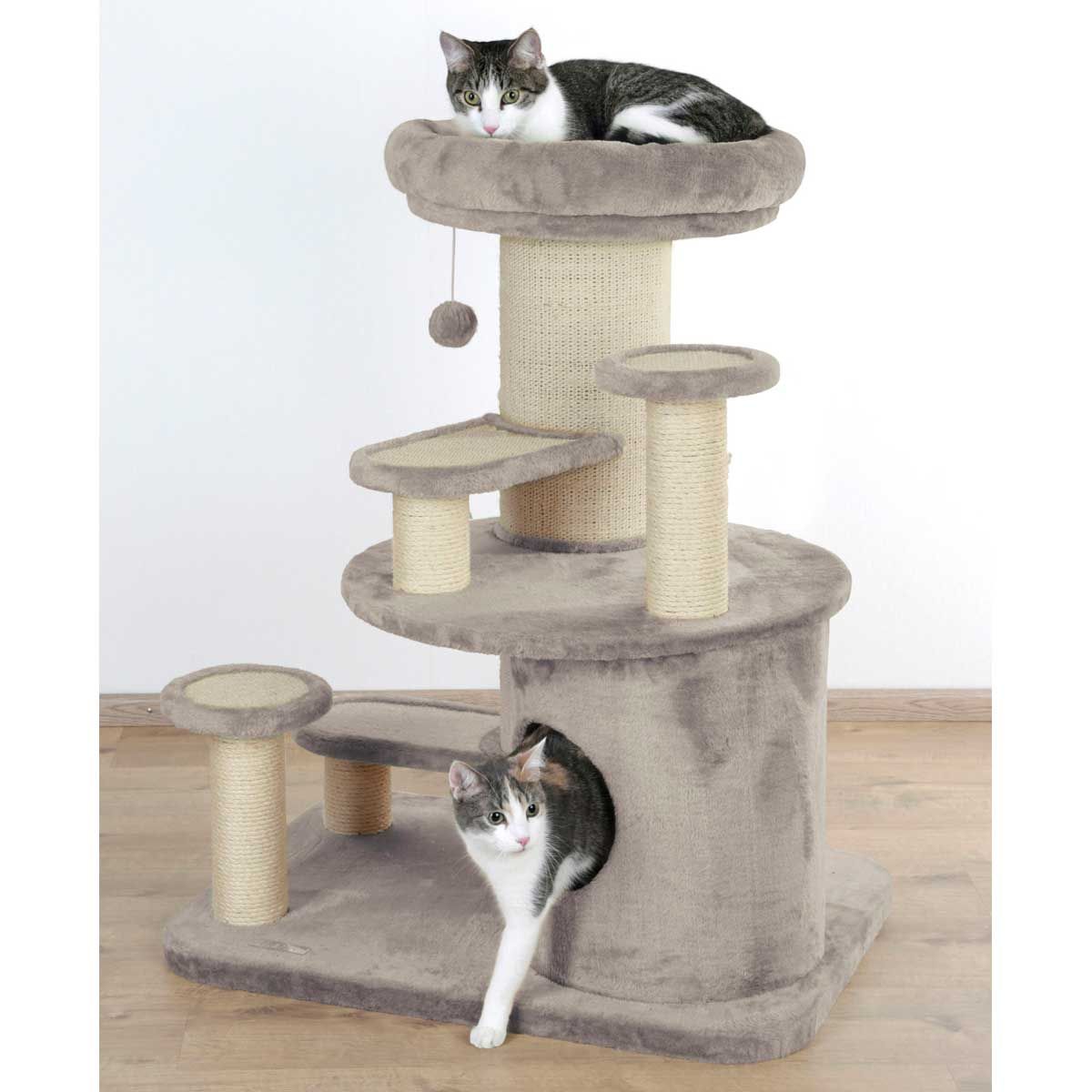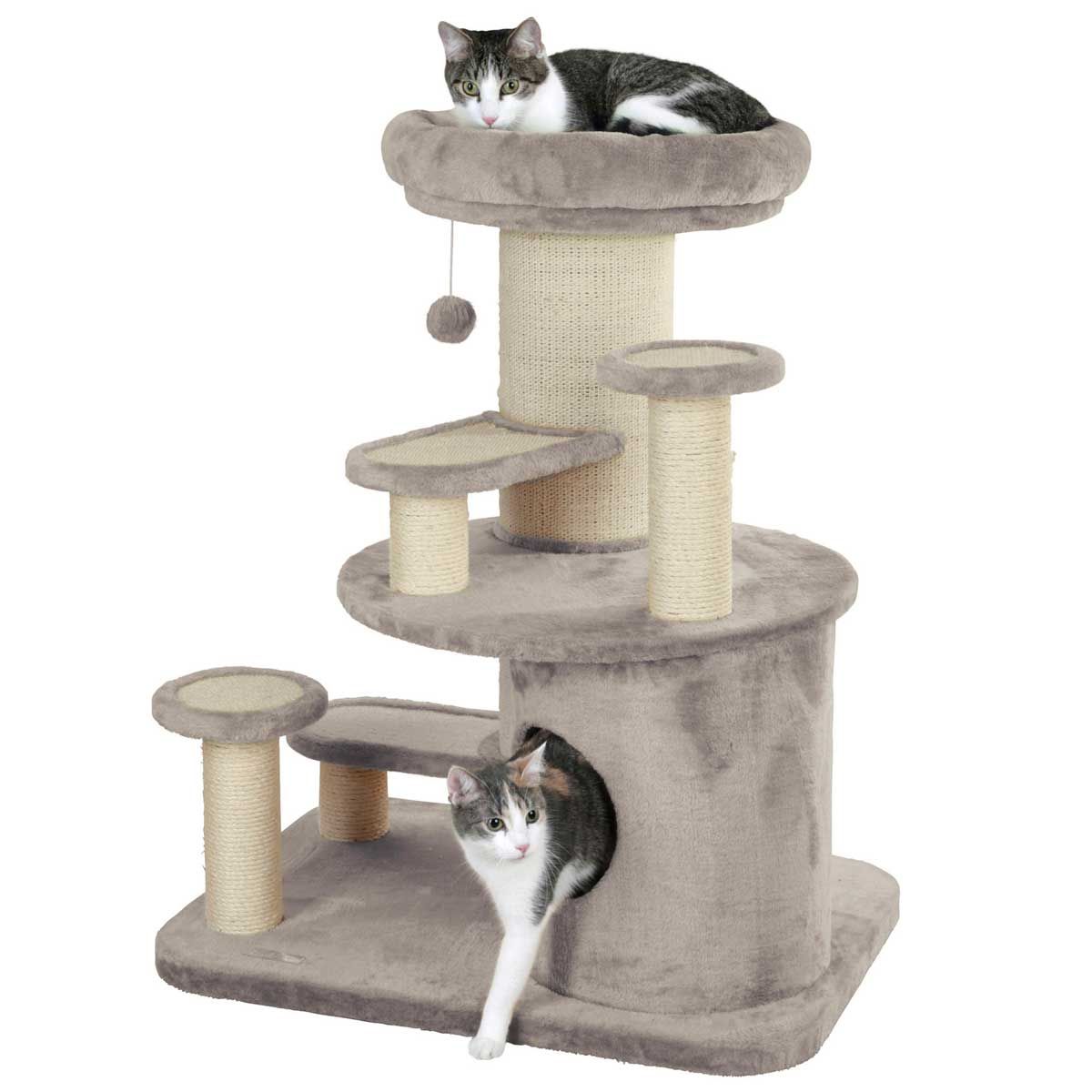 Il tiragraffi per gatti è particolarmente adatto per gatti anziani, malati e in sovrappeso. Grazie alle distanze ridotte dei gradini, l'albero permette di arrampicarsi facilmente. Le colonne sono ricoperte da un tappeto in sisal e incollate con sisal.