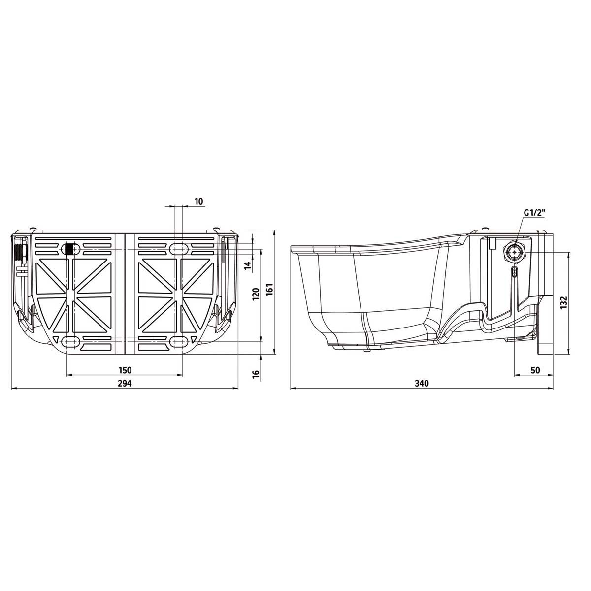 - Attacco dell'acqua da 1/2" - collegamento possibile sia da sinistra che da destra