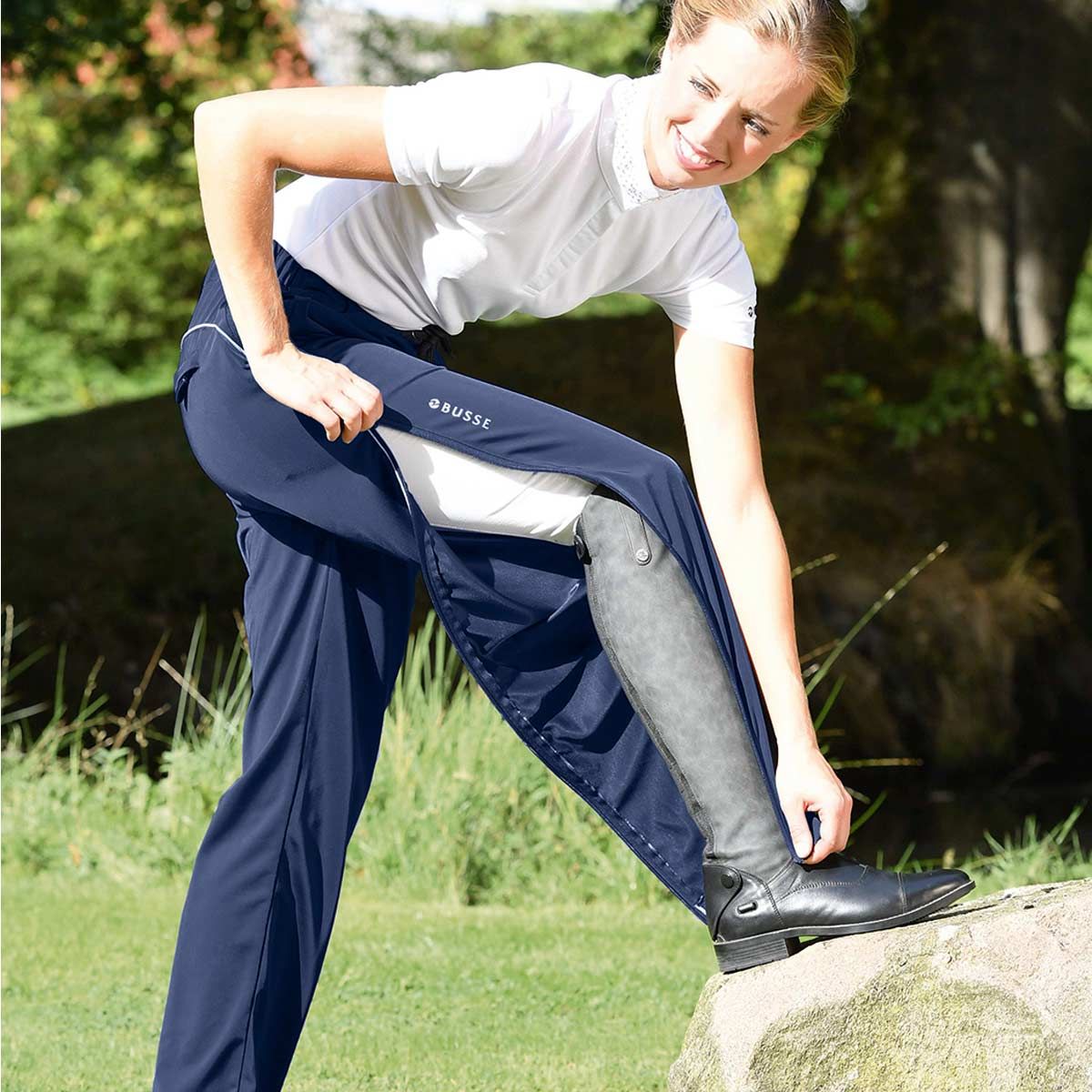 I pratici pantaloni overtrousers da donna proteggono in modo affidabile i calzoni da tutte le sporcizie e il fieno. Perfetto per un lavoro stabile o per la preparazione al torneo. Il materiale di facile manutenzione e traspirante con effetto stretch è comodo da indossare e la comoda cintura elastica in vita può essere ulteriormente fissata con la coulisse. Le cerniere a due vie continue sui lati rendono facile da indossare e togliere, anche con gli stivali da equitazione. Ampie tasche con cerniera sul fronte e sul retro offrono spazio sufficiente per cellulare, chiavi, dolcetti o anelli di criniera.