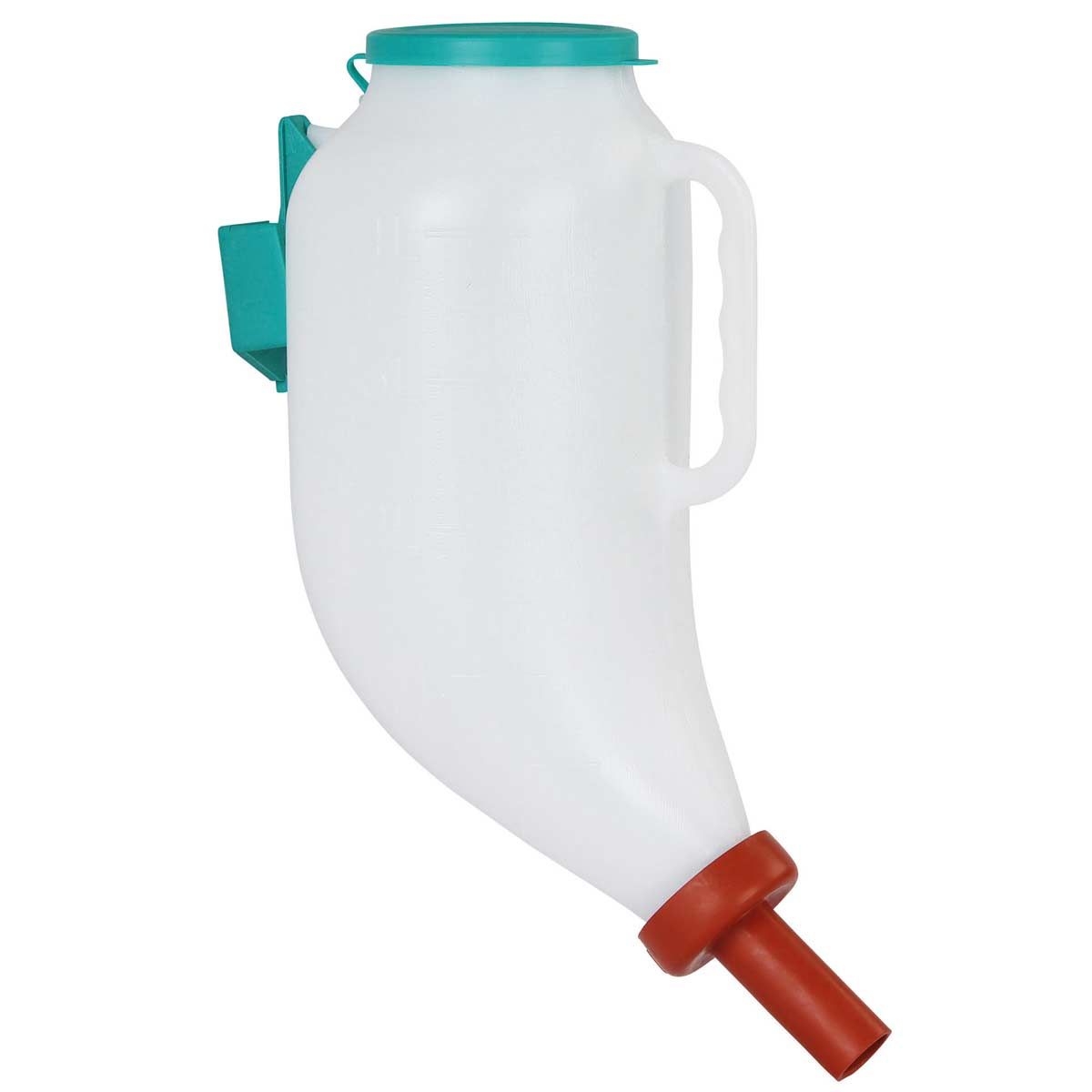 Questa scuderia Bottiglia per alimenti secchi è stato sviluppato per l'allevamento dei vitelli. Il flacone è stato sviluppato per l'alimentazione dei vitelli da allevamento, che vengono somministrati dal 2° giorno in poi per circa 3 mesi e favoriscono notevolmente lo sviluppo del "pre-stomaco". La futura produzione utile (produzione di latte) dell'animale è così aumentata, così come l'utilizzo del mangime è notevolmente migliorato.