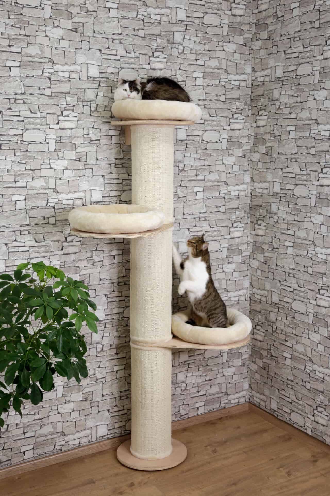 Il moderno albero per gatti Dolomit Tower non è solo un'attrazione nella zona giorno, ma anche un luogo accogliente per giocare e dormire, anche per i gatti più grandi.
