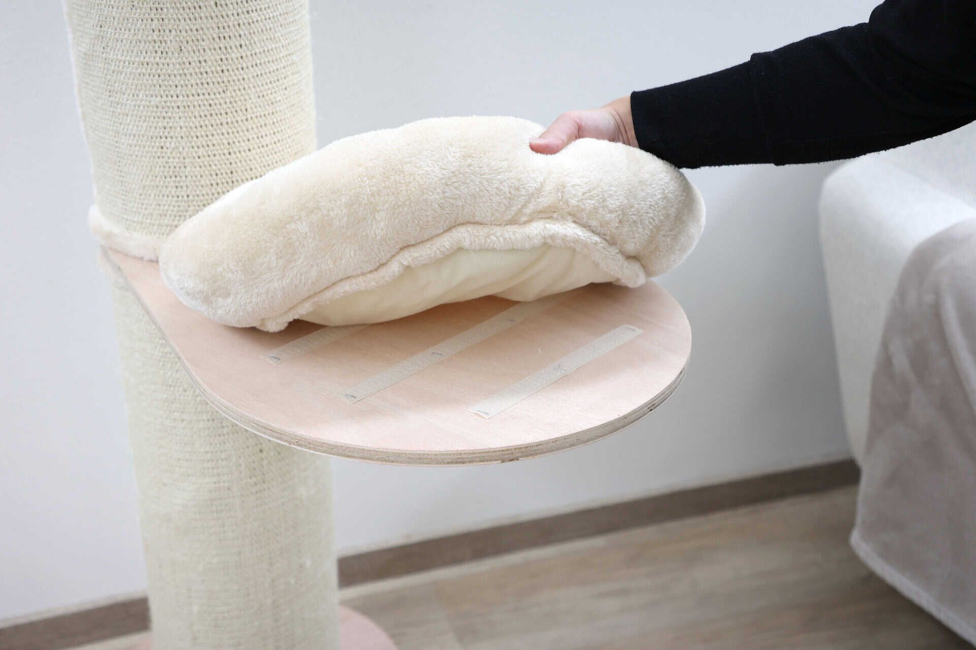 - Cuscino in peluche ø 46 cm con nastro in velcro, rimovibile