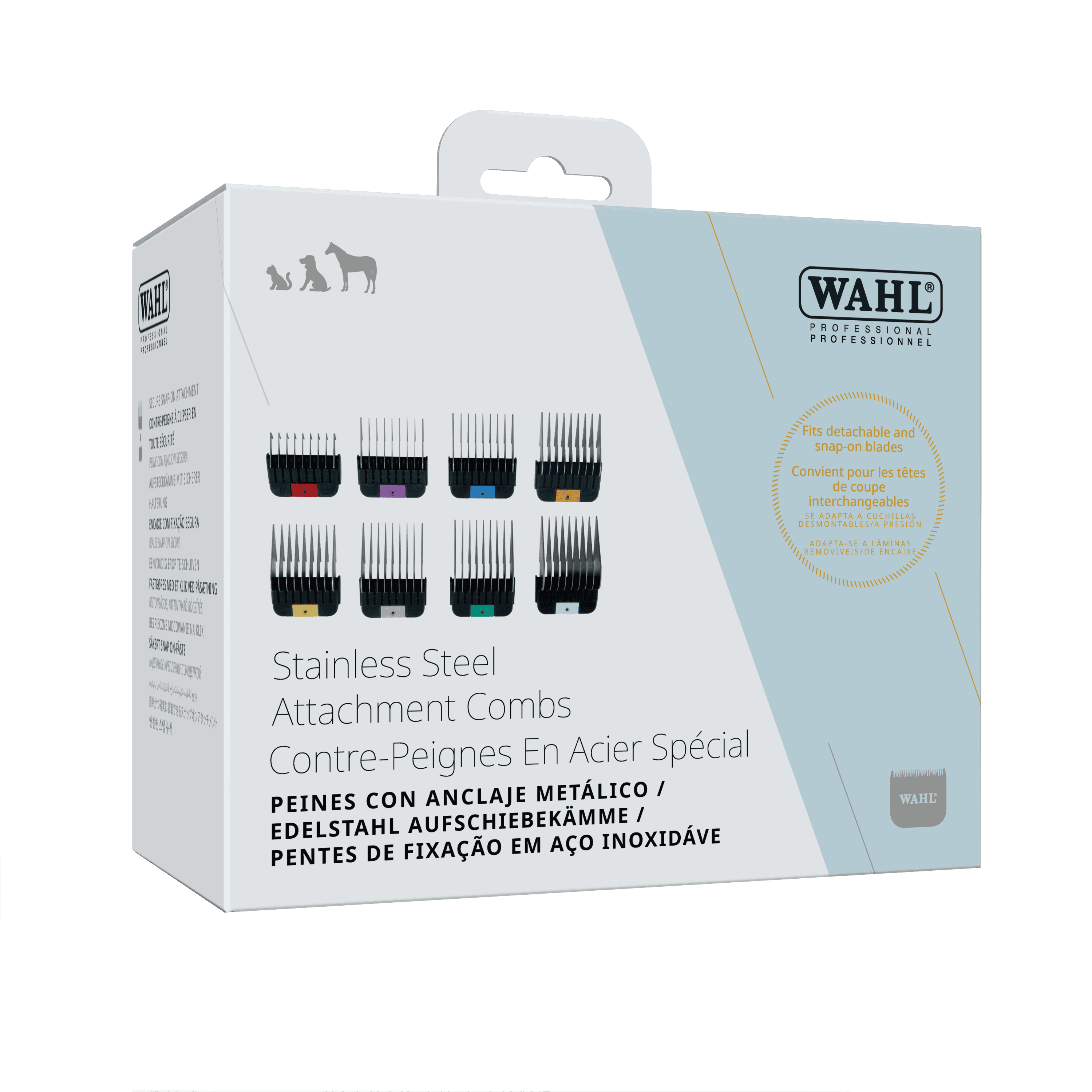 Set di rialzi per tosatrici in acciaio inox Wahl - 8 pezzi per testine serie SnapOn Competition