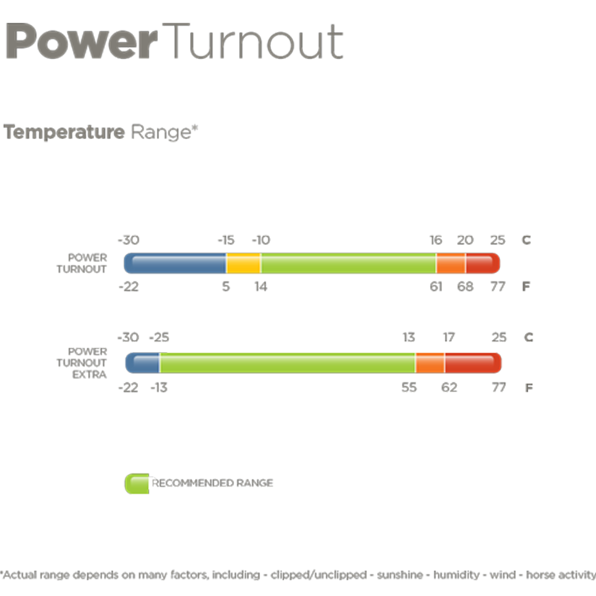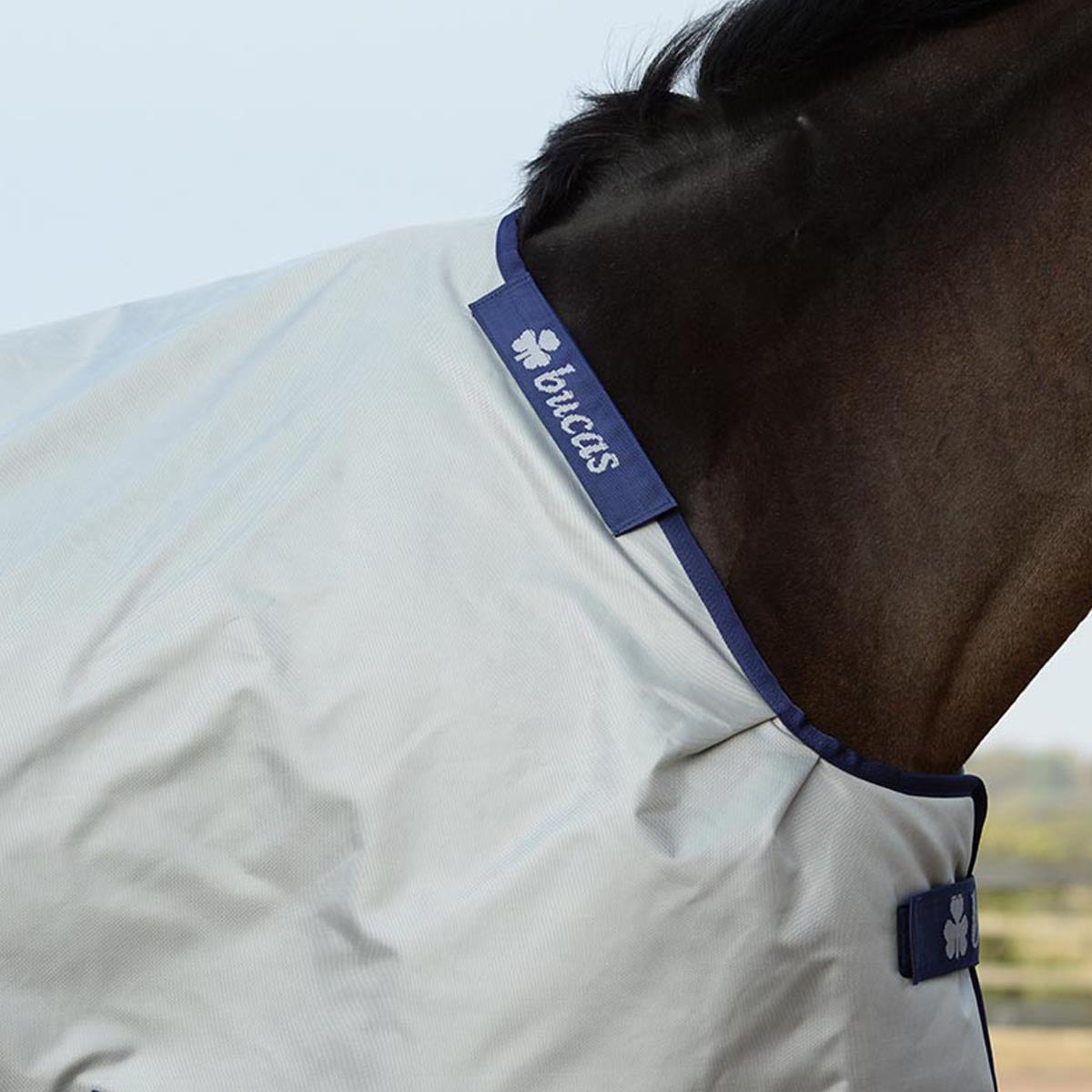 La coperta da cavallo Bucas Power Turnout Light assicura un comfort perfetto e una protezione ottimale anche in condizione di elevata escursione termica. Il materiale esterno della serie Bucas Power Turnout è un nylon balistico di alta qualità, antistrappo, impermeabile e traspirante. Inoltre, la coperta è dotata di un rivestimento esterno argentato riflettente al sole per mantenere il vostro cavallo a suo agio nella stagione calda. Le pieghe delle spalle e il sistema Click'n Go con "Magnet Snaplock" garantiscono una perfetta vestibilità. Inoltre la coperta per cavalli Power Turnout ha il tipico rivestimento Bucas "Stay-dry" con trattamento antibatterico. La coperta può essere utilizzata sul cavallo bagnato come coperta antisudore. L'effetto ottenuto è un'asciugatura rapida del cavallo, senza la necessità di effettuare un cambio della coperta, che rimane asciutta. La combinazione di queste diverse caratteristiche rende la Bucas Power Turnout significativamente più protettiva e confortevole rispetto ad altre coperte di classe e peso simile. La Power Turnout è un'ottima coperta per stalloni e razze con un'ampia circonferenza delle spalle, come i frisoni, gli andalusi o i cavalli da tiro. Disponibile nel taglio classico, con una sezione collo acquistabile separatamente, in stile Big Neck e High Neck.