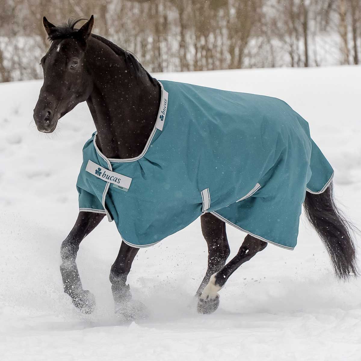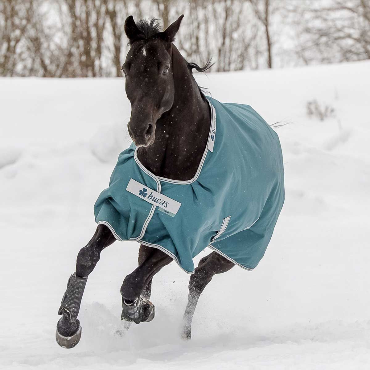 La serie di coperte per l'esterno Atlantic Turnout di Bucas offre elevata protezione al cavallo sia alle alte che alle basse temperature.