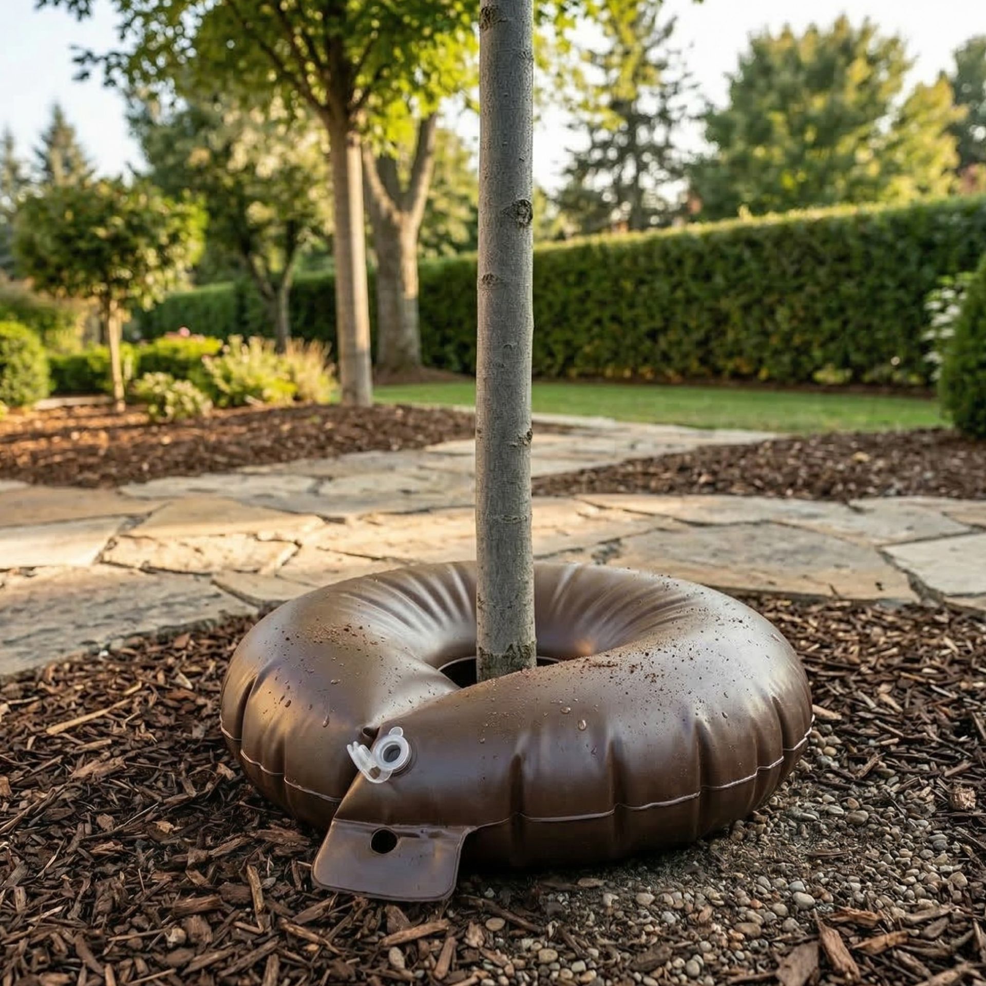 L'anello di irrigazione è una soluzione pratica ed efficace per proteggere gli alberi e migliorarne l'innaffiamento. L'utilizzo dell'anello di irrigazione è l'ideale per le messe a dimora di nuovi alberi e nei periodi di grande siccità con alberi più anziani. Grazie al rilascio lento, gli alberi possono essere irrigati in continuo per un periodo variabile dalle 5 alle 9 ore con una sola ricarica di acqua. Tutto ciò garantisce un'irrigazione uniforme e maggiormente efficace, permettendo al terreno di assorbire l'acqua in profondità ed evitando perdite inutili dovute ad evaporazione o deflusso troppo rapido.