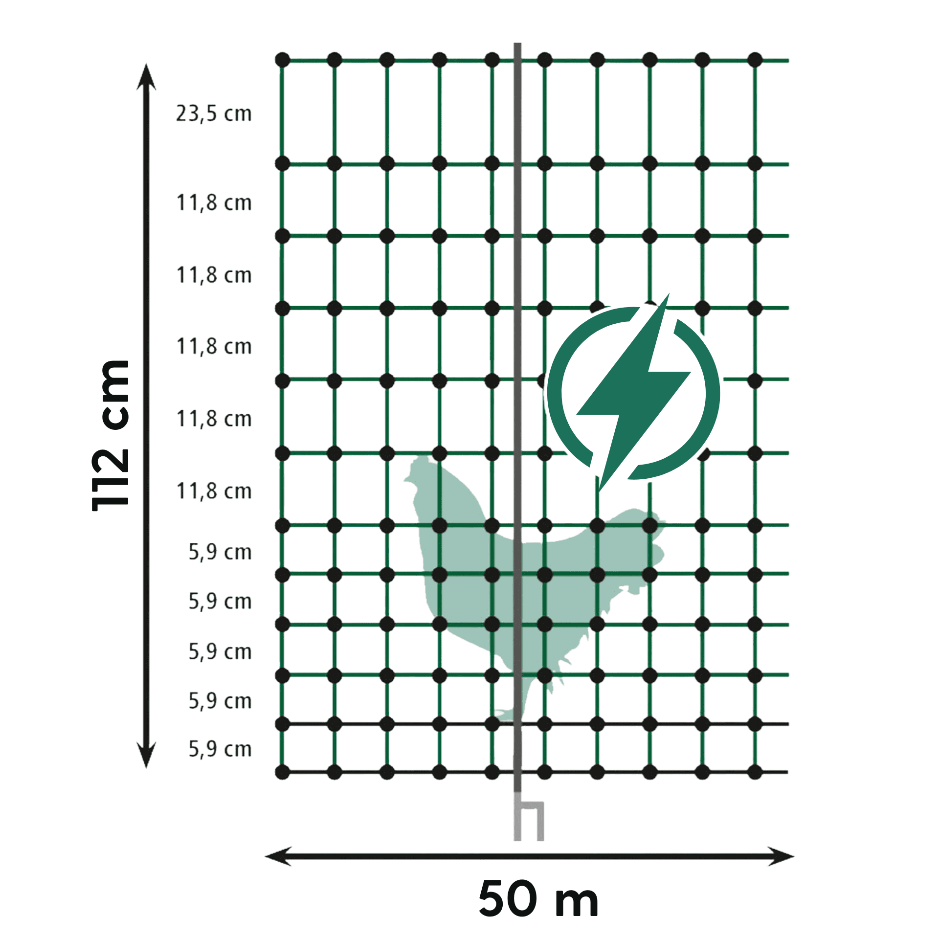 Agrarzone Rete per pollame CLASSIC elettrificabile, doppia punta, verde 50 m x 112 cm