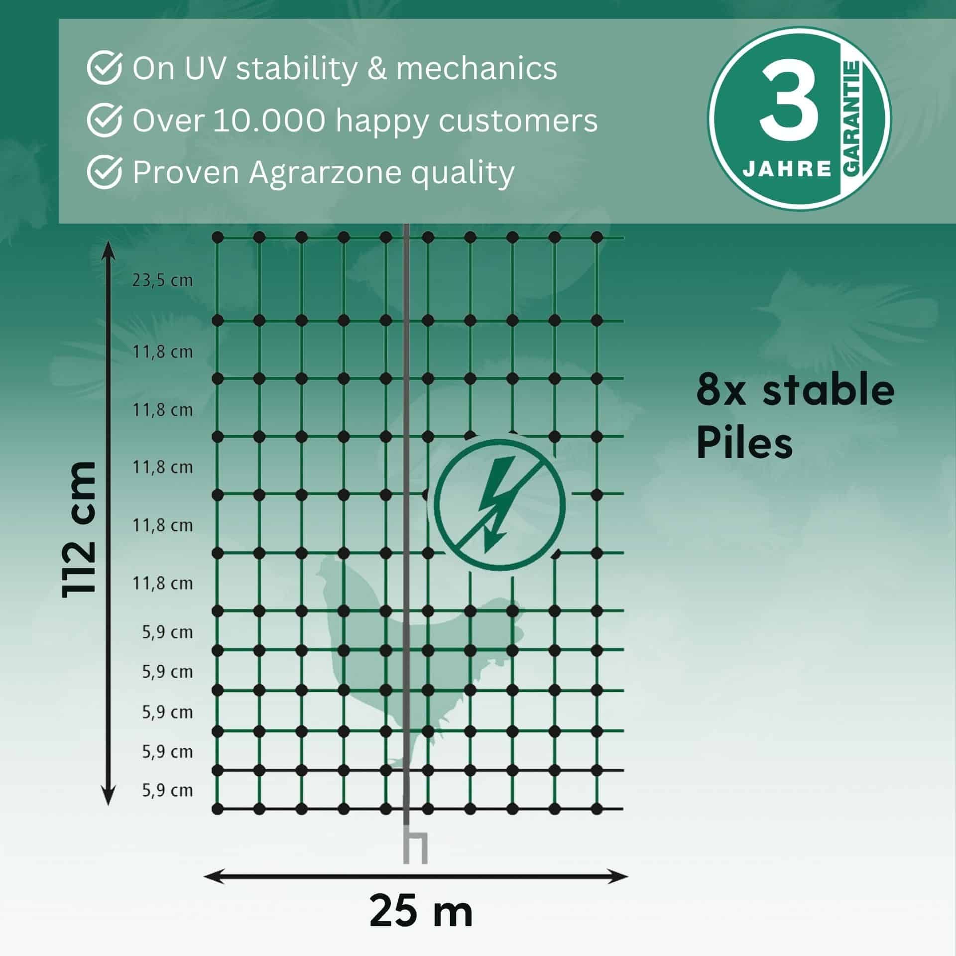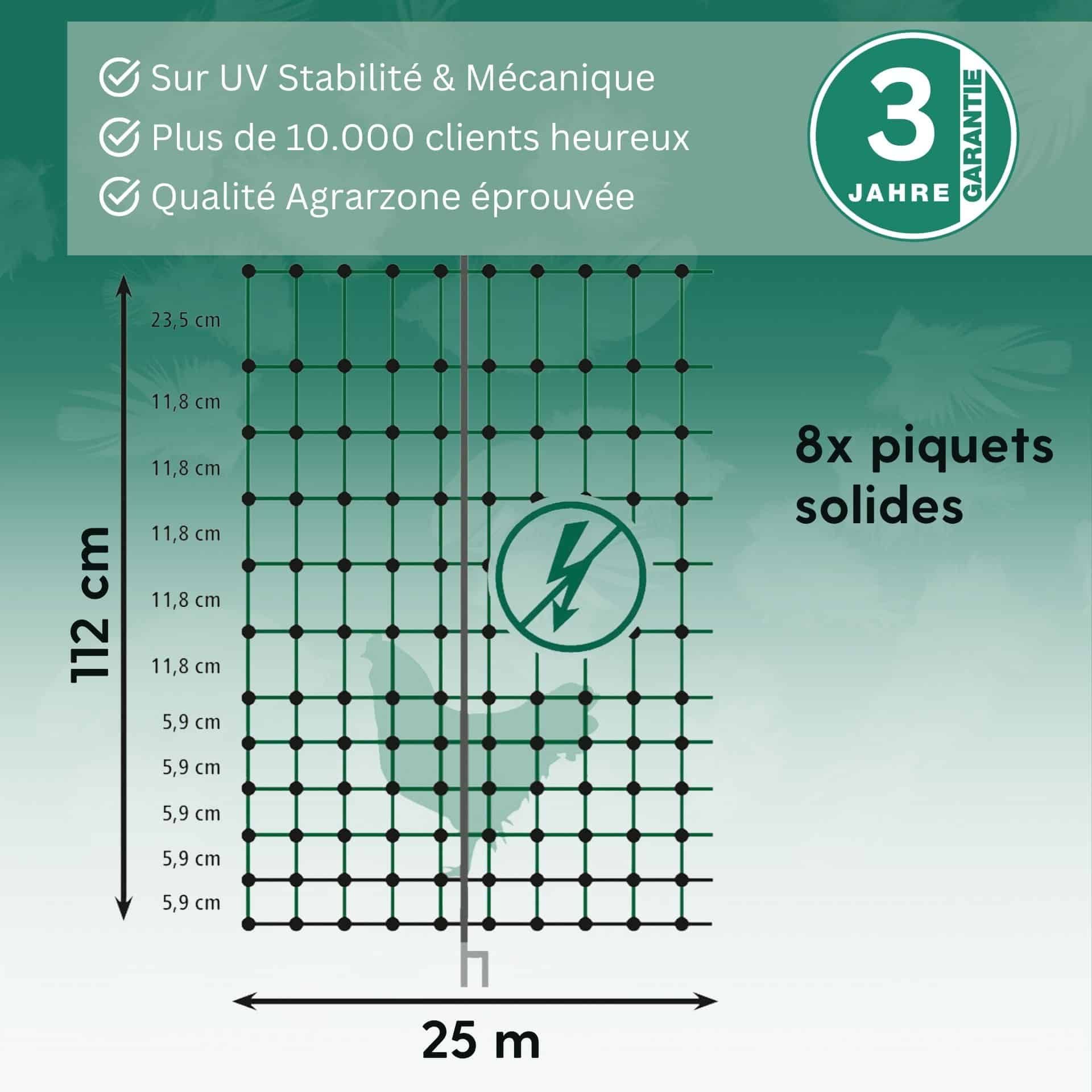 Agrarzone Rete per pollame CLASSIC non elettrificabile, doppia punta, verde 25 m x 112 cm