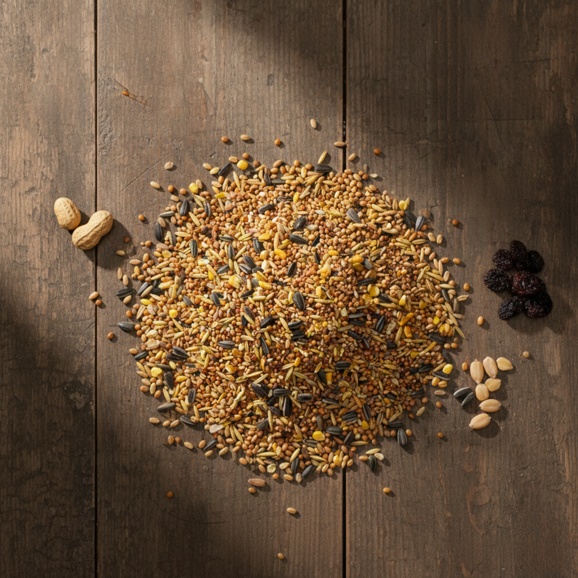 - Miscela di diversi cereali, come grano miglio, frumento, miglio giallo, mais macinato grosso, avena e semi di girasole neri