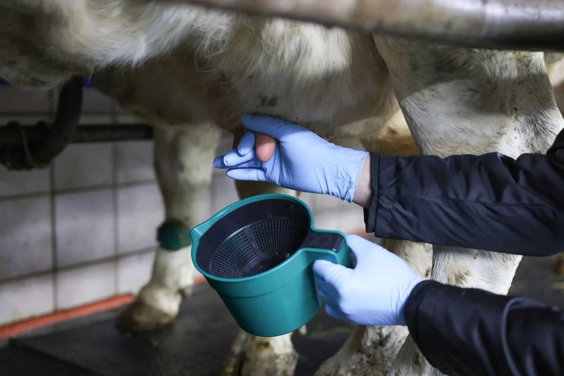 Risposta: Basta posizionare la coppa sotto il capezzolo della mucca e permettere ai primi getti di latte di cadere nella coppa. Puoi quindi osservare il latte raccolto per controllarne la qualità.