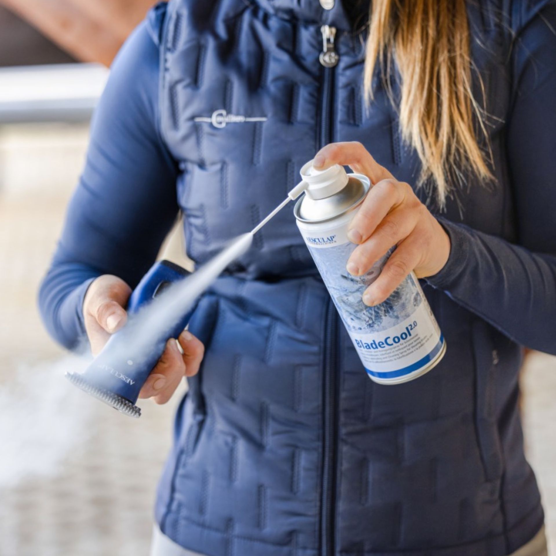 Sì. Puoi spruzzare facilmente Aesculap BladeCool 2.0 sulla testina durante la tosatura. Questo raffredda immediatamente le lame e allo stesso tempo rimuove i residui di pelliccia.