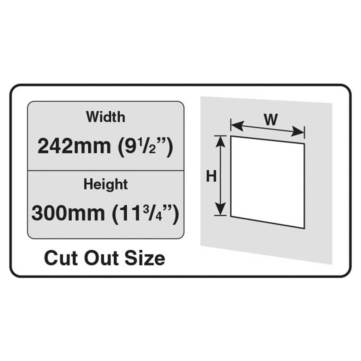 Dimensioni del taglio (l x h): 242 x 300 mm