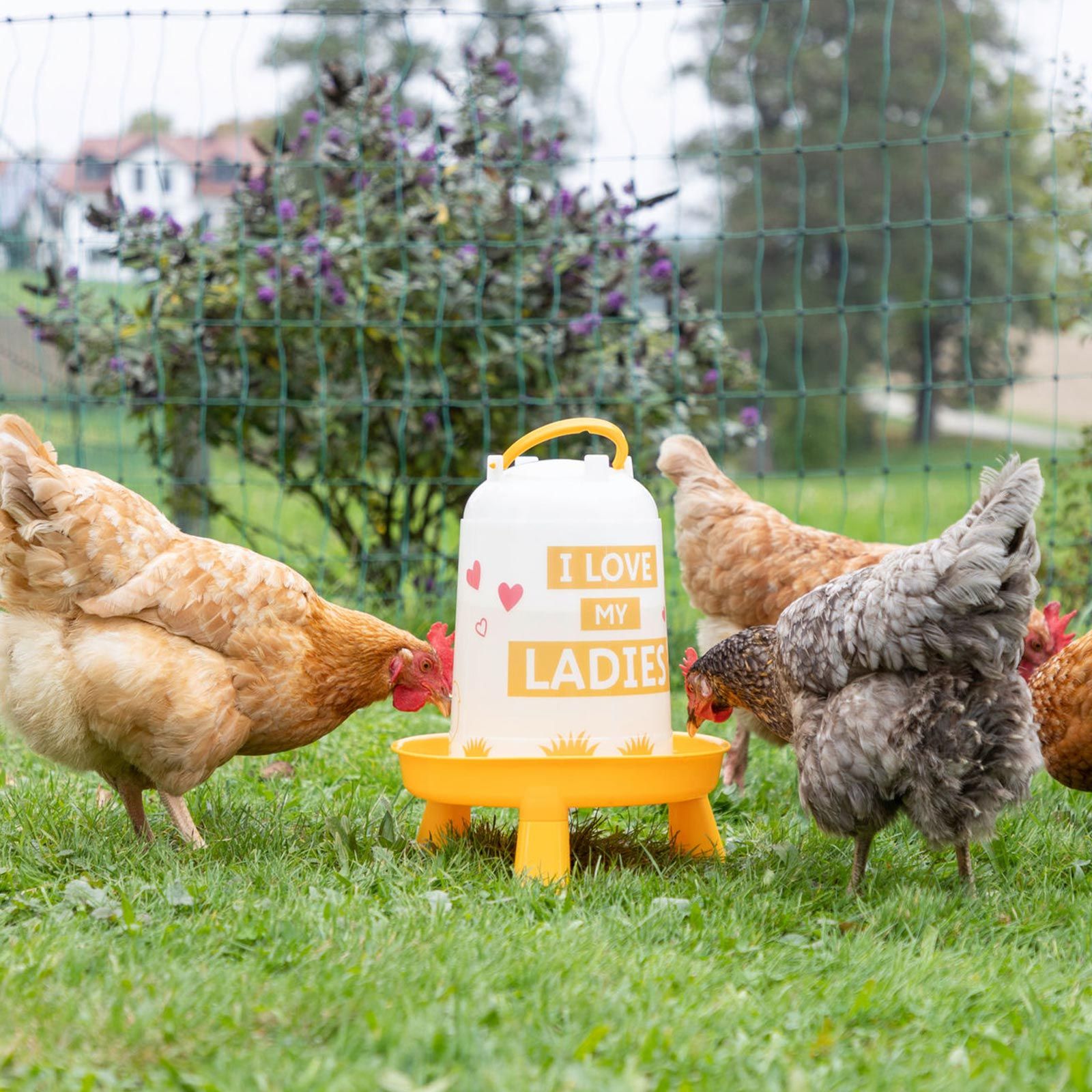 Scegli l'abbeveratoio in plastica "I Love My Ladies" per assicurare alle tue galline un'adeguata idratazione e un ambiente sano.