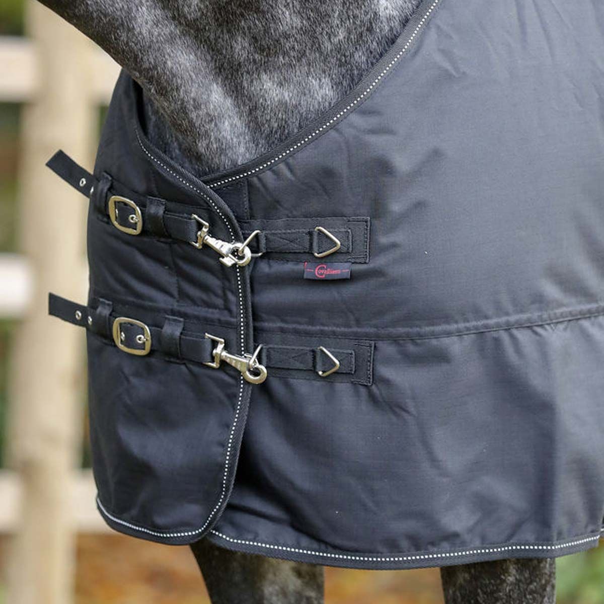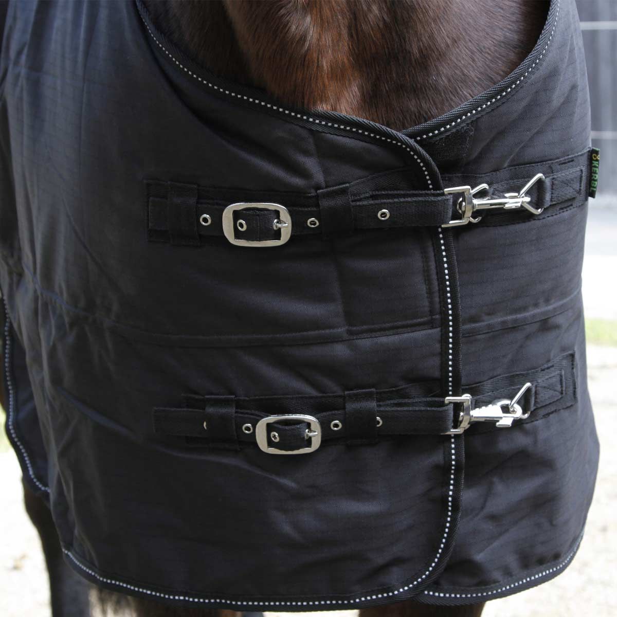 Il sito Covalliero Coperta per cavalli RugBe 200 è il tappeto da cavallo ottimale per le fredde e umide giornate autunnali e invernali. Il tappeto per cavalli combina un'ottima vestibilità e una sufficiente libertà di movimento. Il tappeto invernale impermeabile mantiene il cavallo asciutto all'esterno e allo stesso tempo garantisce l'equalizzazione della temperatura. La pettorina di nuova concezione permette al cavallo di muoversi liberamente e garantisce una vestibilità ottimale.