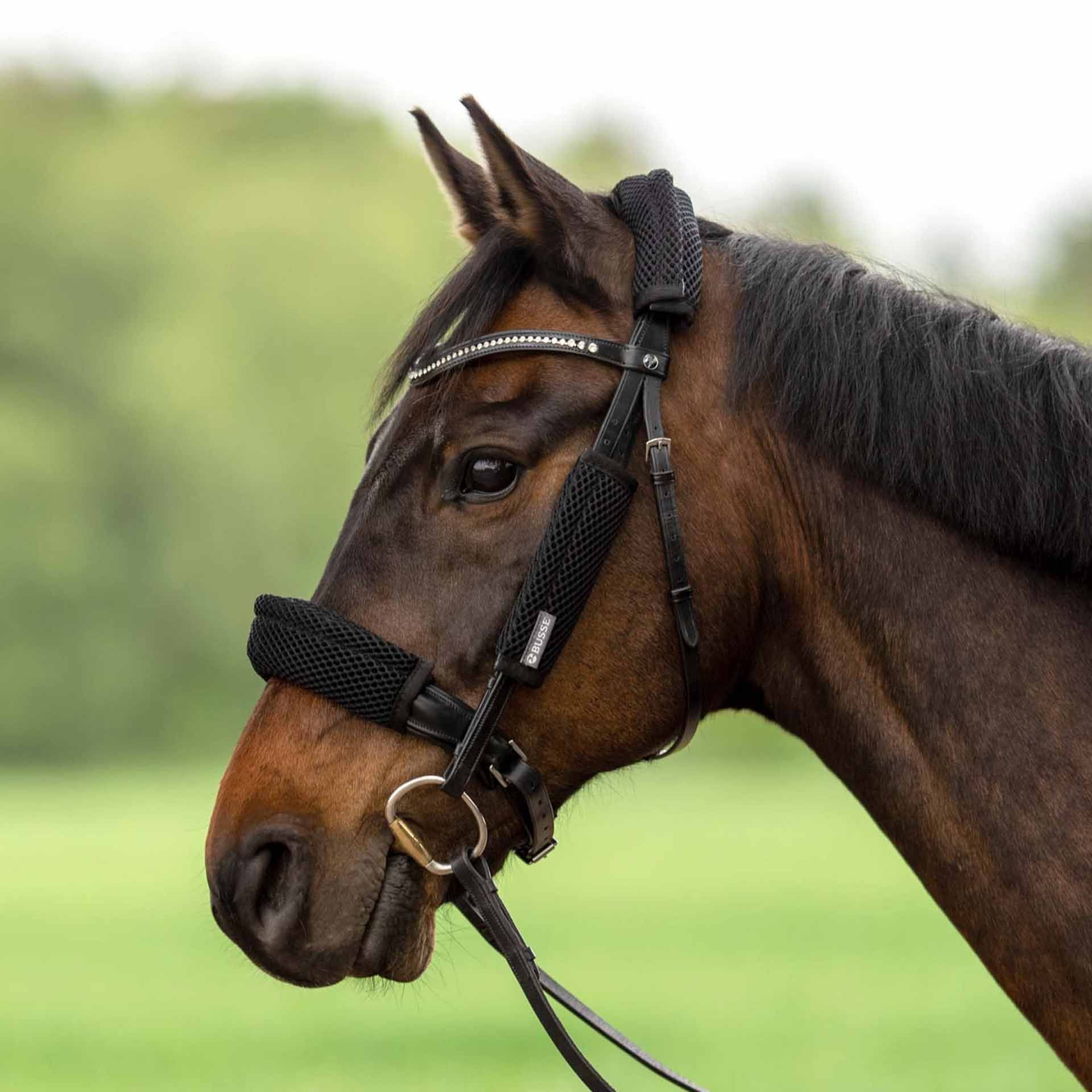 Realizzate in materiale 3D AIR® EFFECT Mesh innovativo e altamente funzionale, queste imbottiture garantiscono una migliore distribuzione della pressione, preservando al contempo la circolazione dell'aria e proteggendo la pelle e il pelo del tuo cavallo. Sono particolarmente ideali per cavalli con pelle, pelo e sensibilità alla pressione nella zona della testa, offrendo una soluzione pratica anche in estate quando il calore e il sudore possono causare problemi sotto le imbottiture di pelle, neoprene o pelo.