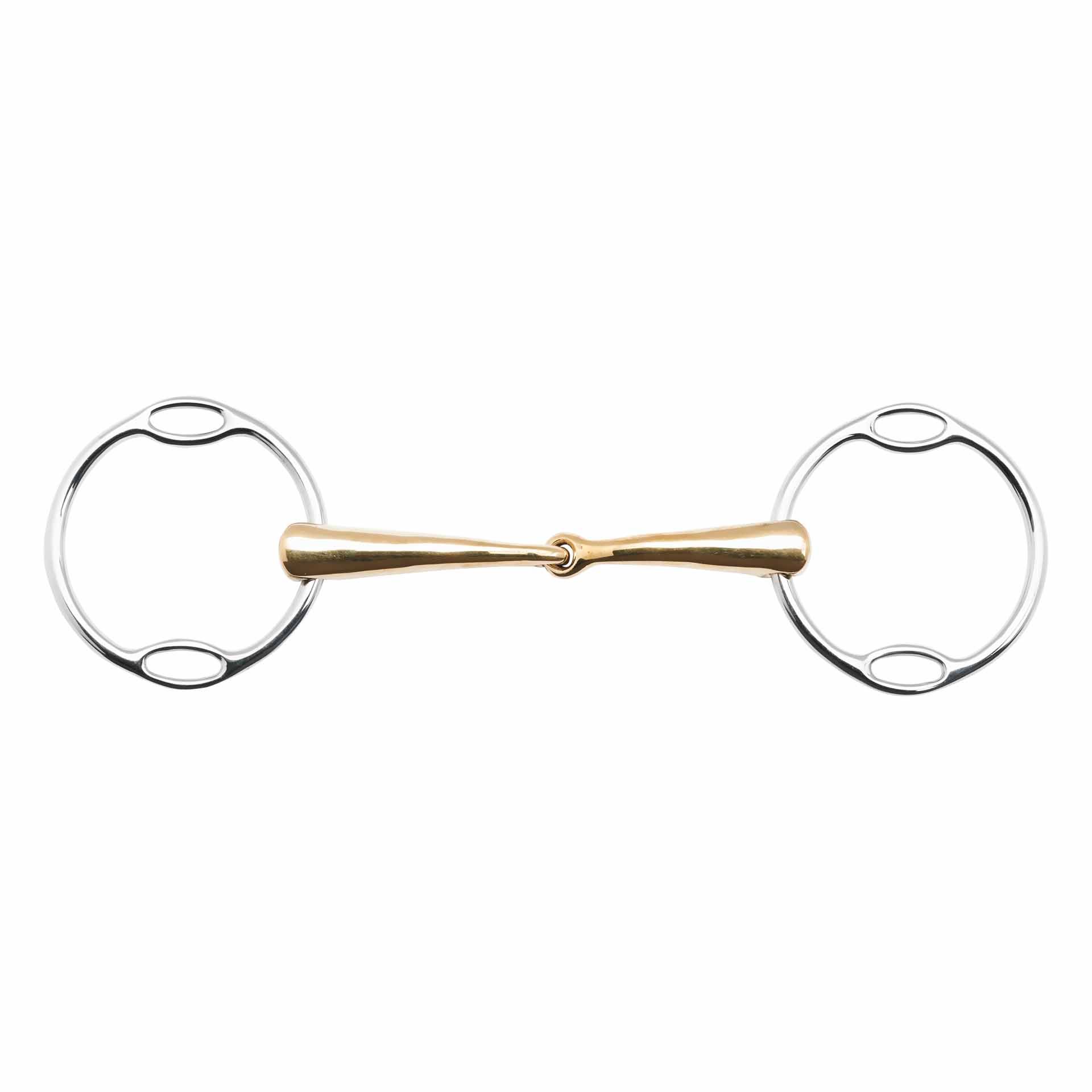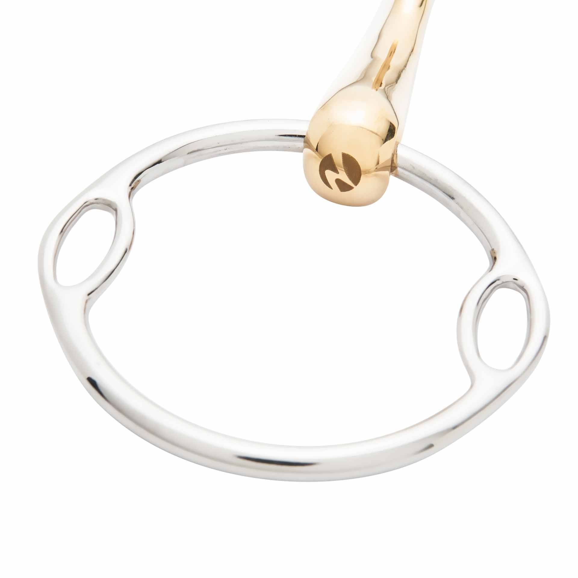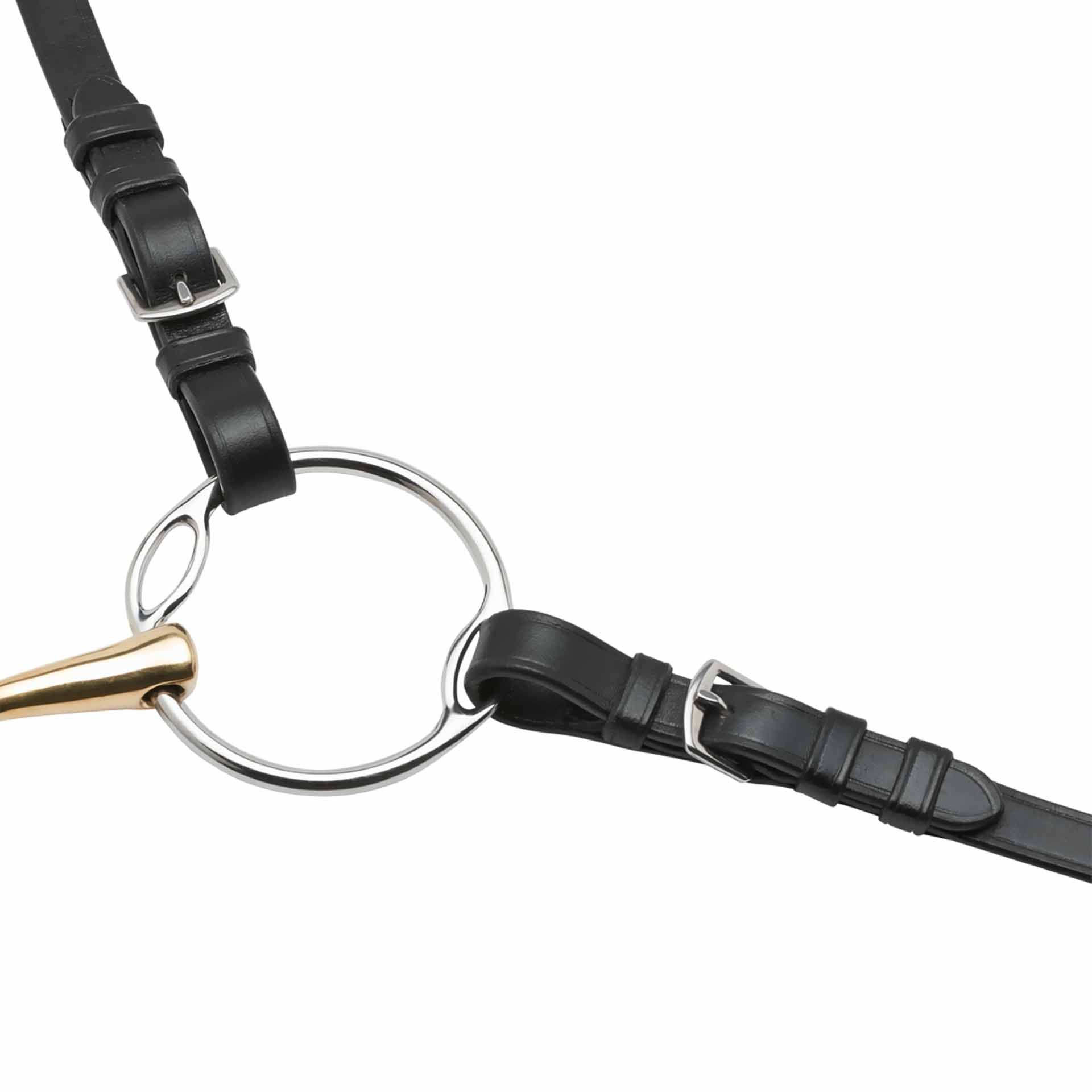 La struttura massiccia di questo filetto garantisce una posizione stabile in bocca, mentre il materiale Kaugan® dello snodo stimola la salivazione, aumentando l'accettazione dello stesso da parte del cavallo. Inoltre, la versatilità di questo filetto è un ulteriore vantaggio: grazie ai piccoli anelli integrati nel cerchio principale, permette tre differenti opzioni di fissaggio, in base allo stadio di addestramento del cavallo. Questo design innovativo ti permette di sperimentare e trovare la configurazione che meglio risponde alle tue esigenze.