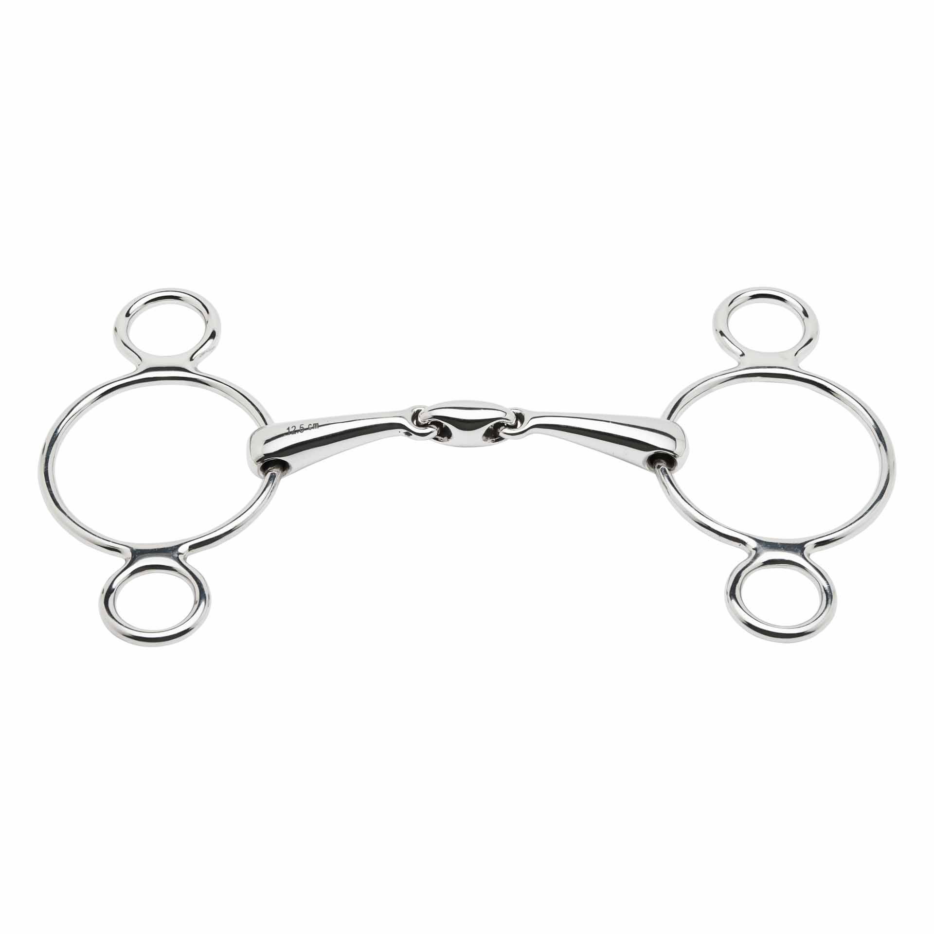 Con il Filetto a 3 anelli in acciaio inox EDELSTAHL 16 mm, doppio snodo di BUSSE potrai portare la tua esperienza di equitazione a un livello completamente nuovo. Scopri la differenza di un controllo avanzato e affidabile e goditi una comunicazione ottimale con il tuo cavallo.