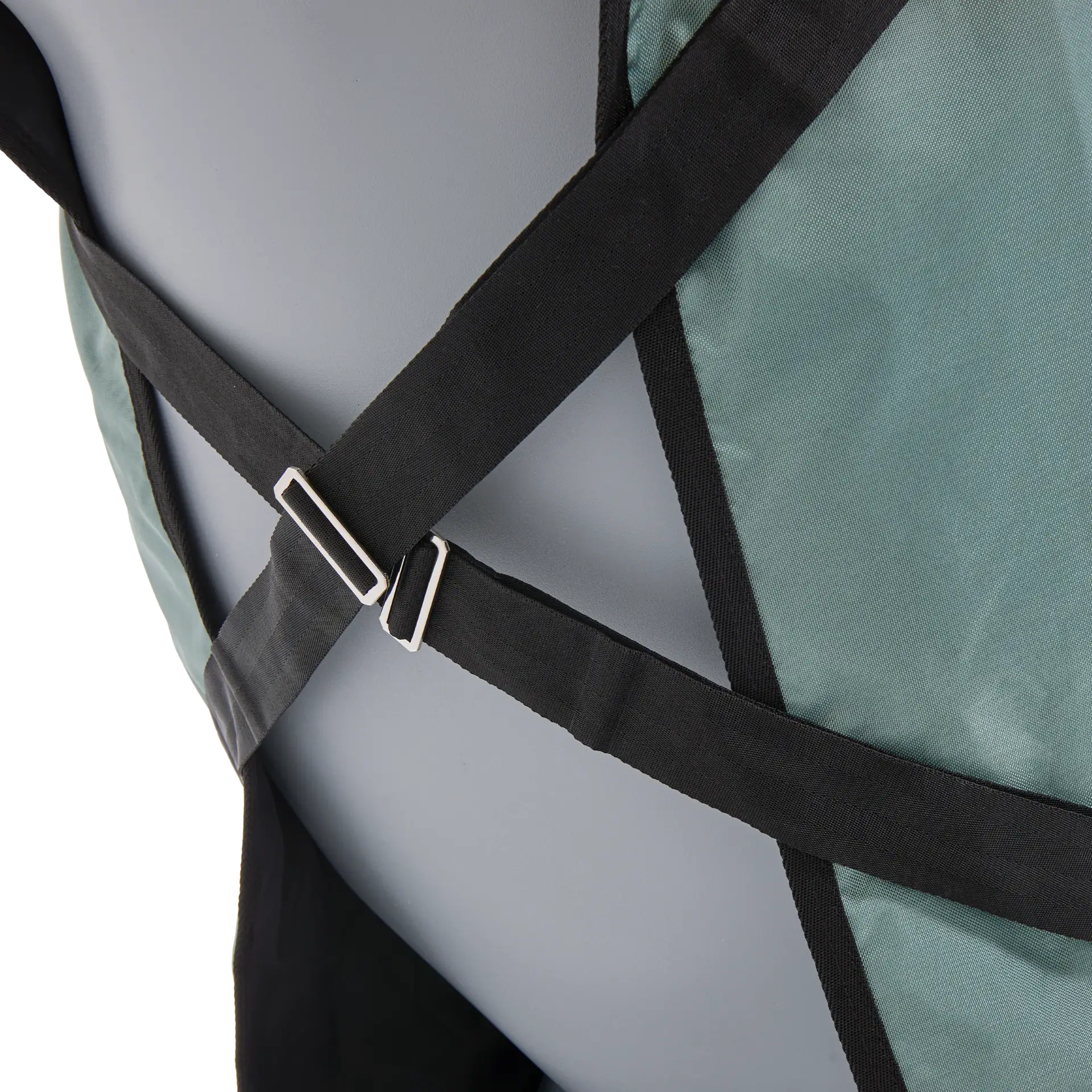FLEXIBLE PRO 250 è realizzata in un resistente nylon da 840 denari, un materiale durevole e provato. Fornisce un'isolamento termico medio grazie a 250 g di Polyfill. La fodera DRYsense, un tessuto in poliestere amico della pelliccia e ad asciugatura rapida, assicura una sensazione asciutta anche in condizioni di alta umidità atmosferica. Questo aiuta a prevenire la formazione di condensa e mantiene la coperta asciutta internamente, anche quando viene rimossa dal cavallo. Il materiale superiore ha una traspirabilità di 3000 g/m²/24h, un'impermeabilità all'acqua di 5000 mm ed è anche a prova di vento.