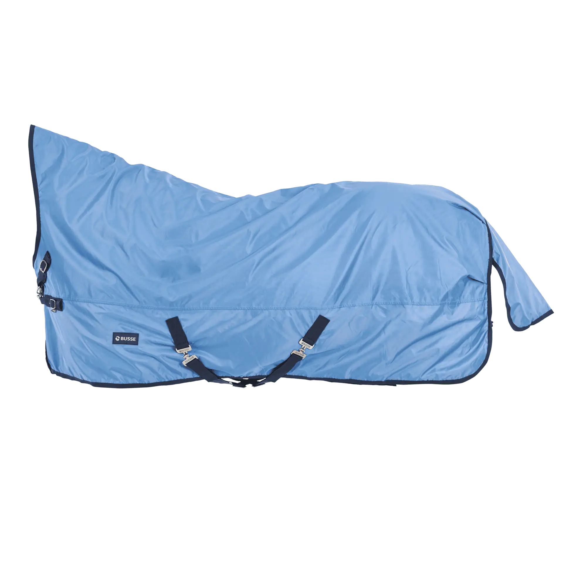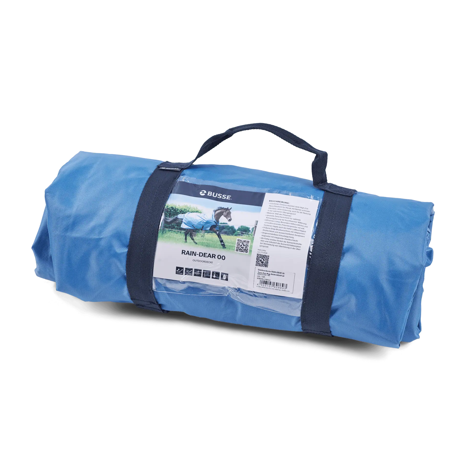Busse Coperta da esterno RAIN-DEAR 00 offre un comfort outdoor esteso grazie alla sua forma High-Cut-Neck, ideale per i cavalli con una linea superiore piatta e stretta. È la coperta da pioggia definitiva senza isolamento, perfetta anche per l'uso durante la stagione di transizione più calda.