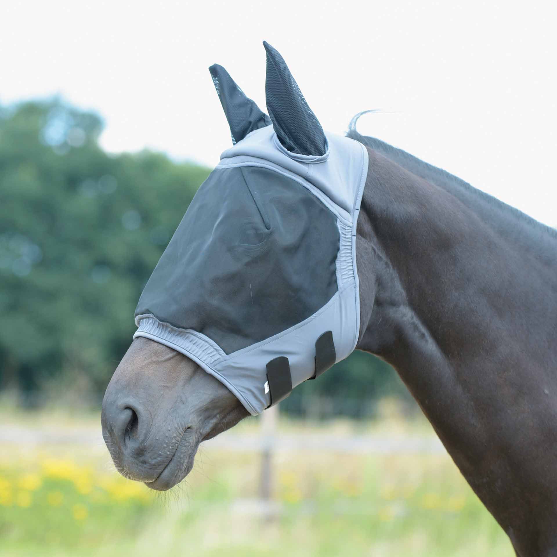 Una maschera antimosche deve adattarsi bene per poter essere d'aiuto. In caso contrario potrebbero verificarsi danni. La vestibilità deve adattarsi alla testa del cavallo/pony. È possibile apportare una regolazione finale utilizzando qualsiasi opzione di impostazione sul prodotto. Anche con una maschera antimosche adattata in modo ottimale, l'adattamento deve essere controllato regolarmente, in modo coscienzioso e professionale e corretto se necessario. Se la maschera antimosche scivola, la vista può essere limitata o persa. Per il cavallo, animale da fuga, ciò può provocare panico e causare incidenti. La seduta ideale può essere compromessa, ad esempio, da sfregamenti nella zona della testa o da conspecifici tenuti in gruppo. In questi singoli casi si sconsiglia l'uso di maschere antimosche. Controllare regolarmente il pelo e la pelle per eventuali sfregamenti. Anche con maschere antimosche che si adattano in modo ottimale, queste possono essere causate da corpi estranei (ad es. pietre, insetti) tra la maschera e il cavallo. Il rischio di irritazione della pelle aumenta a causa del sudore. Pulisci la maschera regolarmente.