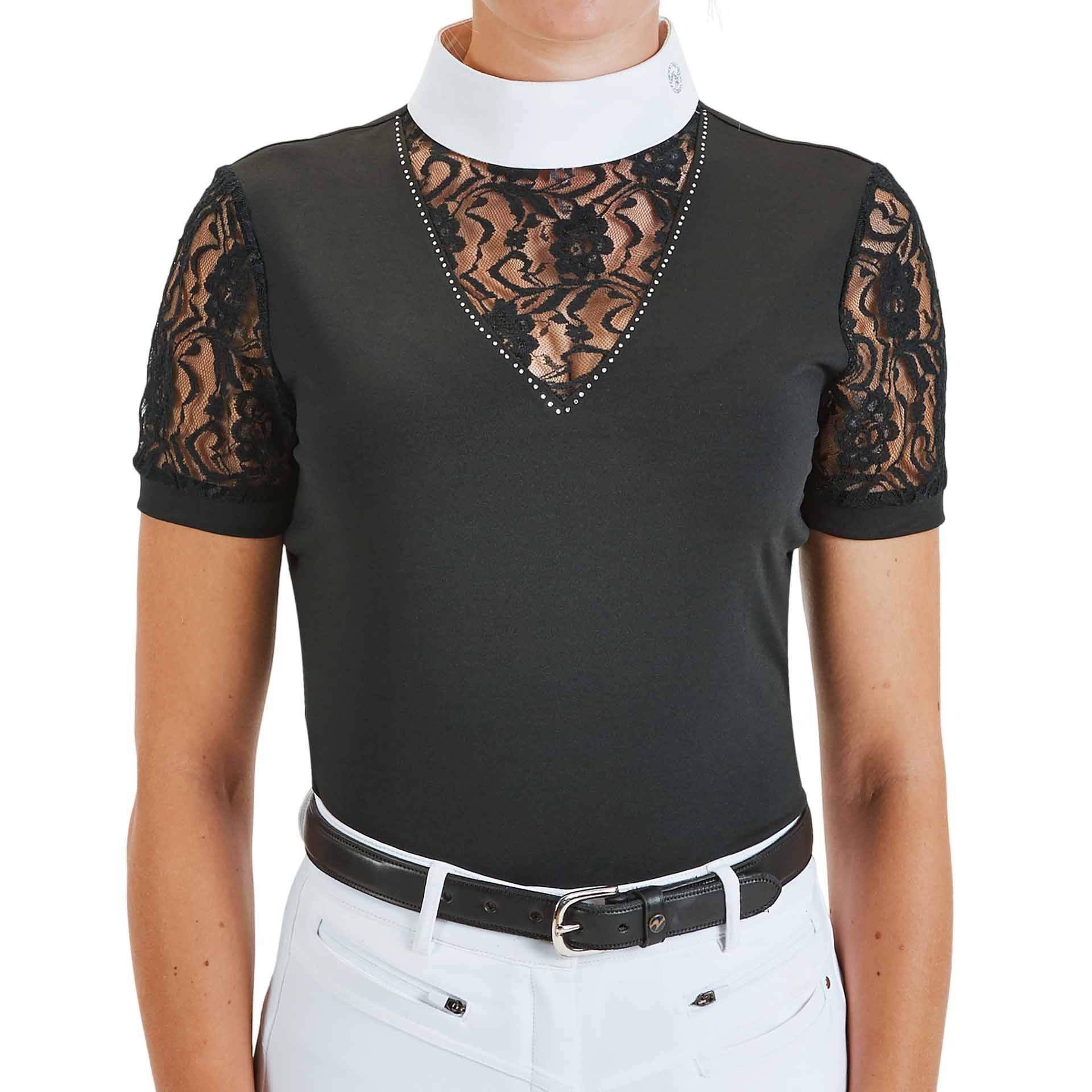 Prova la maglia da torneo Ravenna di Busse, un capo di abbigliamento elegante e femminile ideale per tutti gli appassionati di equitazione. La maglia da torneo Ravenna, caratterizzata da un esclusivo pizzo sulle maniche e sull'ampio scollo a V, è perfetta per le giornate estive, grazie al suo design raffinato e la freschezza del materiale.