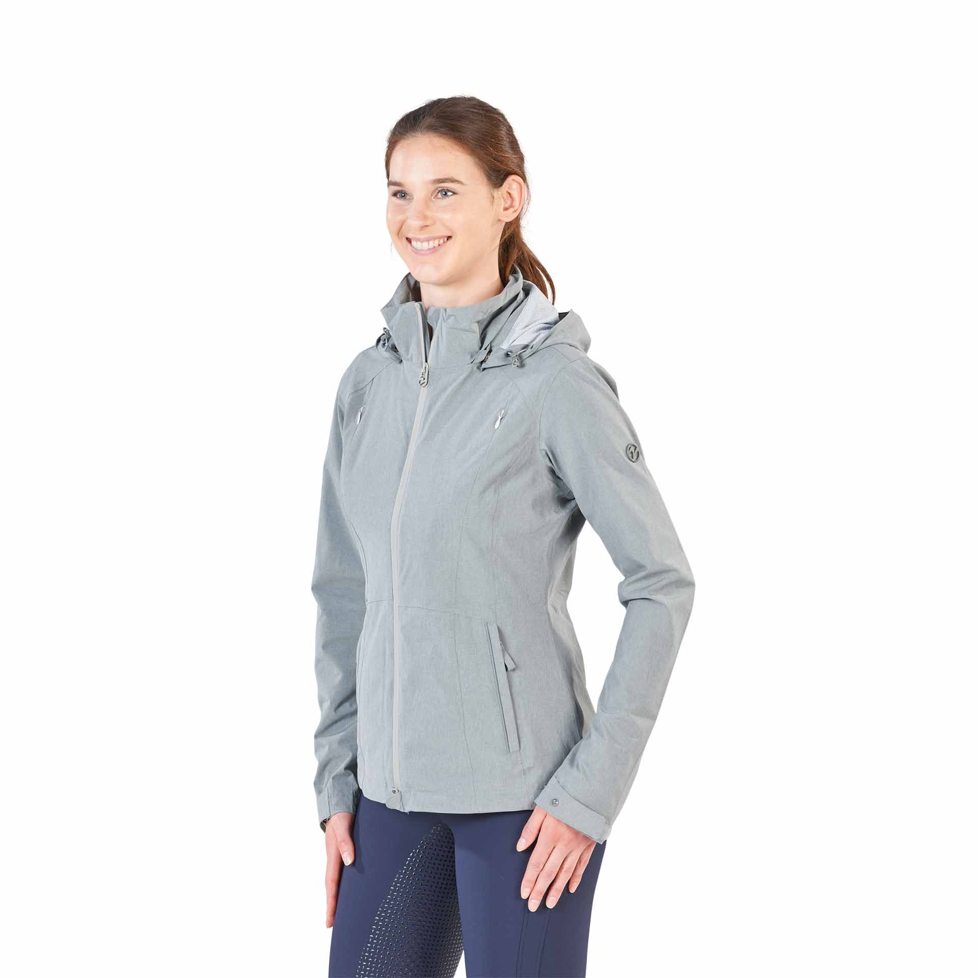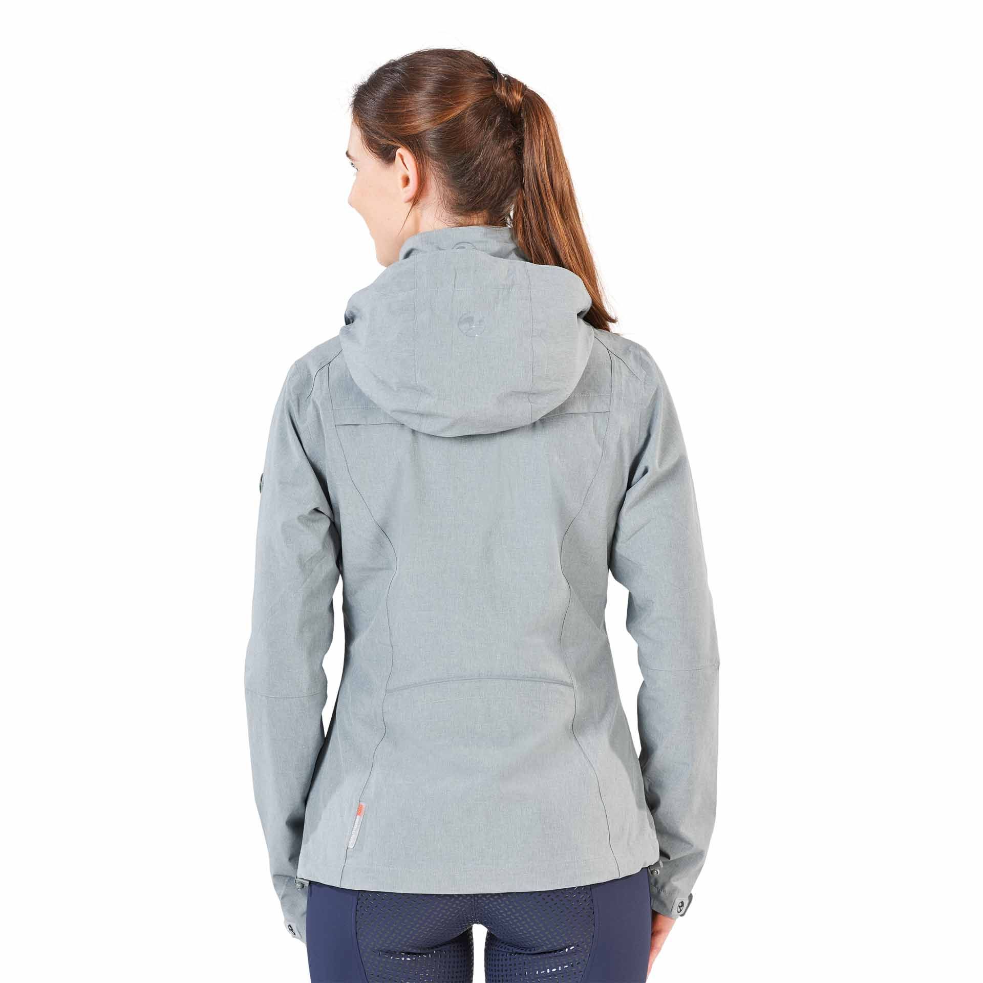 Questa giacca ha diverse funzionalità specifiche per i cavalieri: una zip principale a due vie impermeabile con protezione per il mento, l'orlo e la sella per proteggere la pelle; sottili zip di ventilazione lungo le cuciture del petto, rivestite con rete; un bordo riflettente sulle tasche e nella zona lombare; un cordoncino elastico interno regolabile in vita per una vestibilità individualizzata; un cappuccio regolabile e removibile che può essere fissato nella zona posteriore durante la cavalcata; un particolare bottone a pressione per mantenere la giacca in posizione anche quando è aperta; tre capienti tasche con zip, compresa una tasca interna con un'apertura per il passaggio dei cavi degli auricolari; maniche preformate con estremità regolabili con velcro; un cordoncino elastico regolabile individualmente all'occorrenza nella zona dell'anca per una vestibilità perfetta "a misura di cavallo".