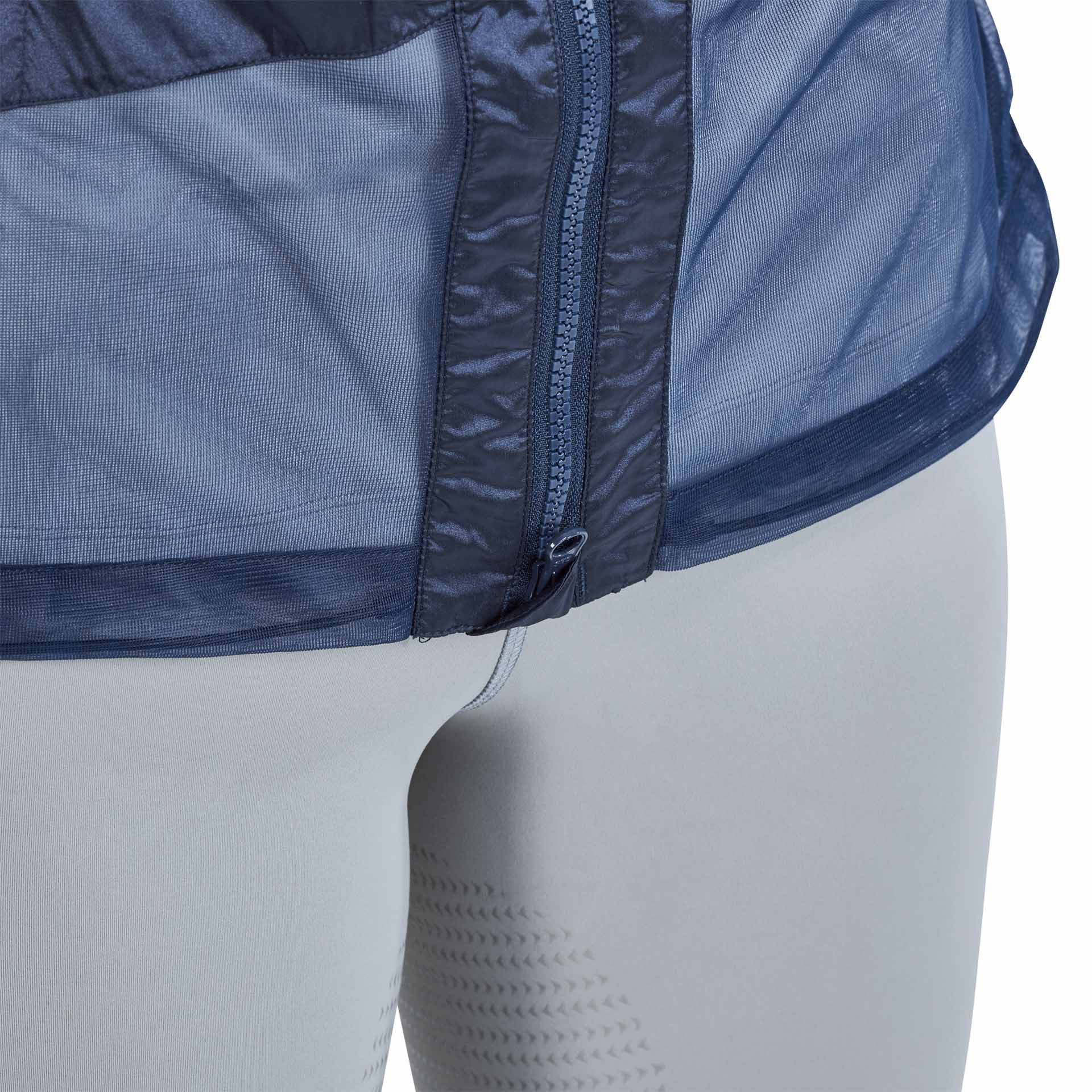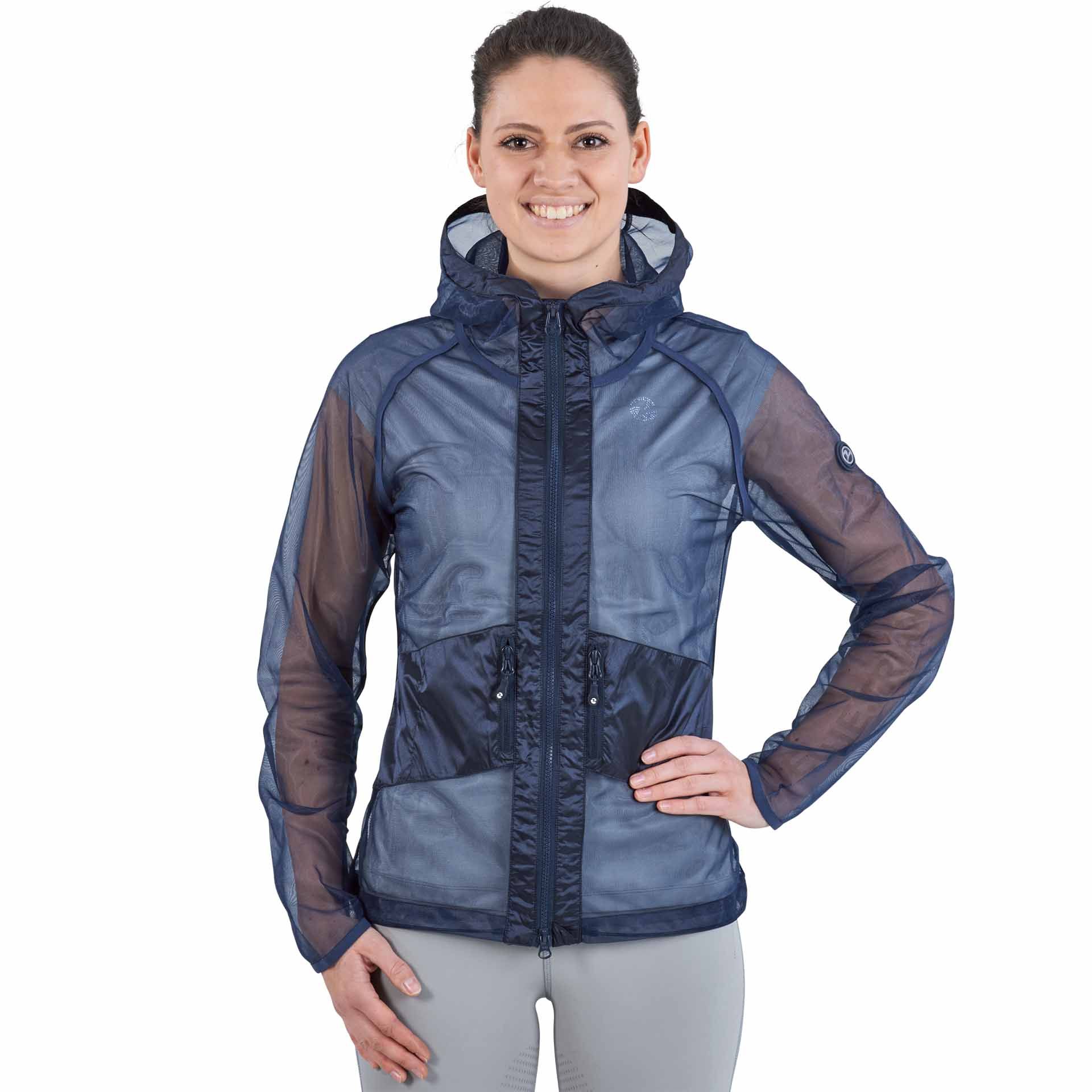 Questa giacca ha diverse funzionalità specifiche per i cavalieri: una zip principale a due vie con protezione per l'orlo e la sella per proteggere la pelle; una cappuccio regolabile che può, all'occorrenza, fornire una certa protezione anche nel viso; due capienti tasche con zip offrono spazio sufficiente per lo smartphone e piccoli oggetti a rischio di perdita; estremità delle maniche con polsini leggermente elastici in Lycra®; un cordoncino elastico regolabile individualmente all'occorrenza nella zona dell'anca per una vestibilità perfetta "a misura di cavallo".