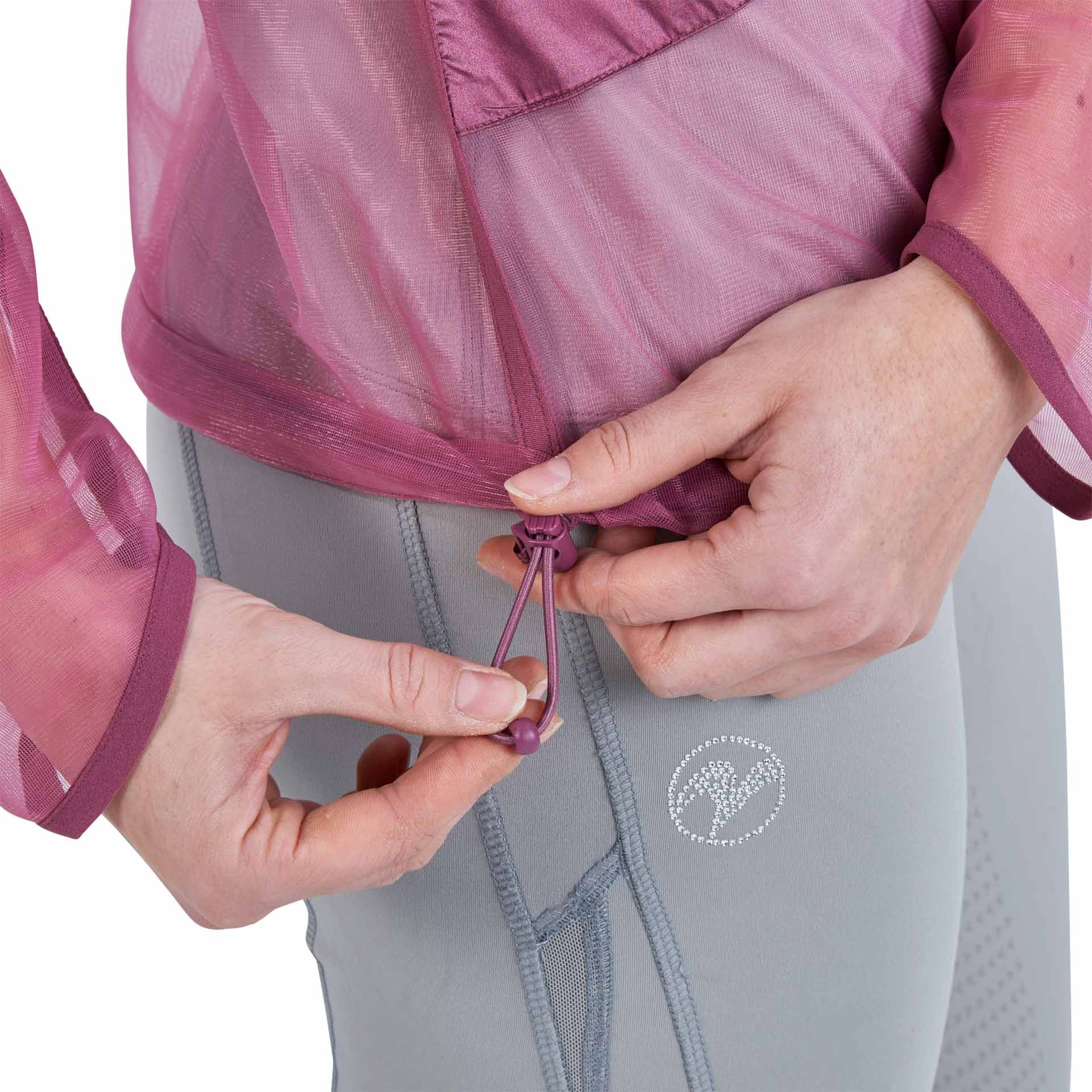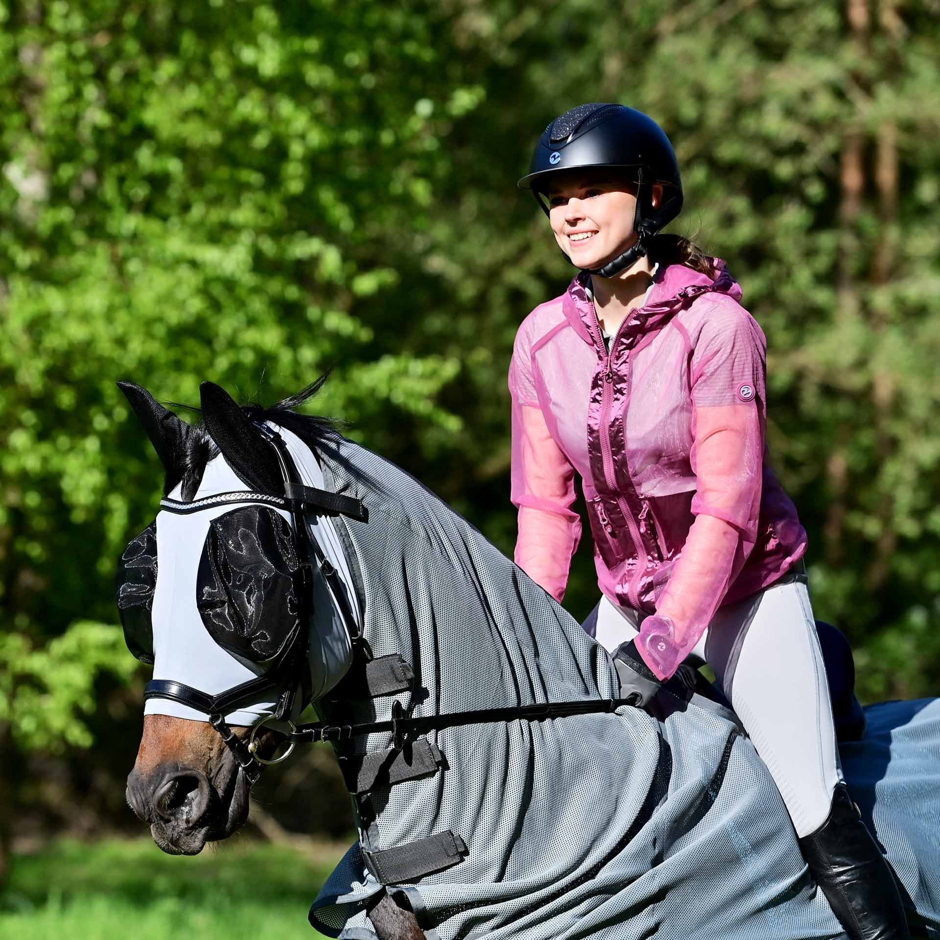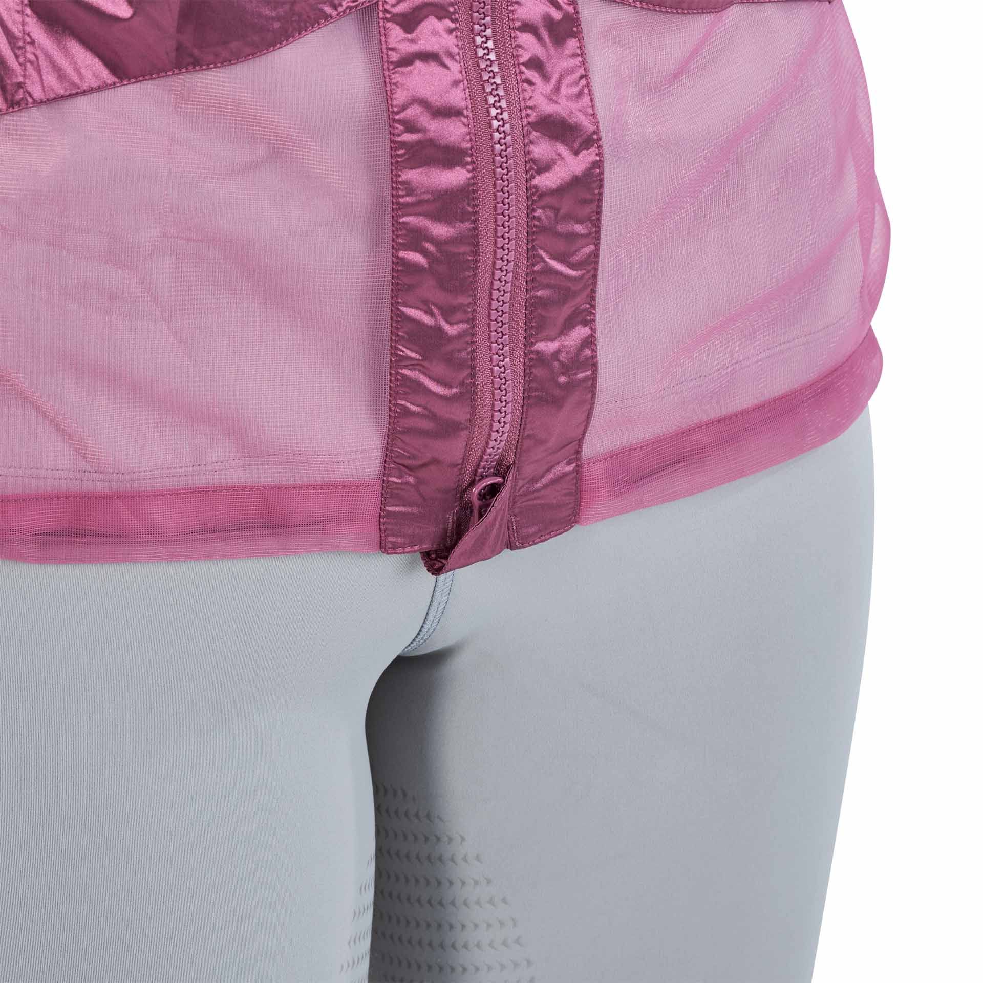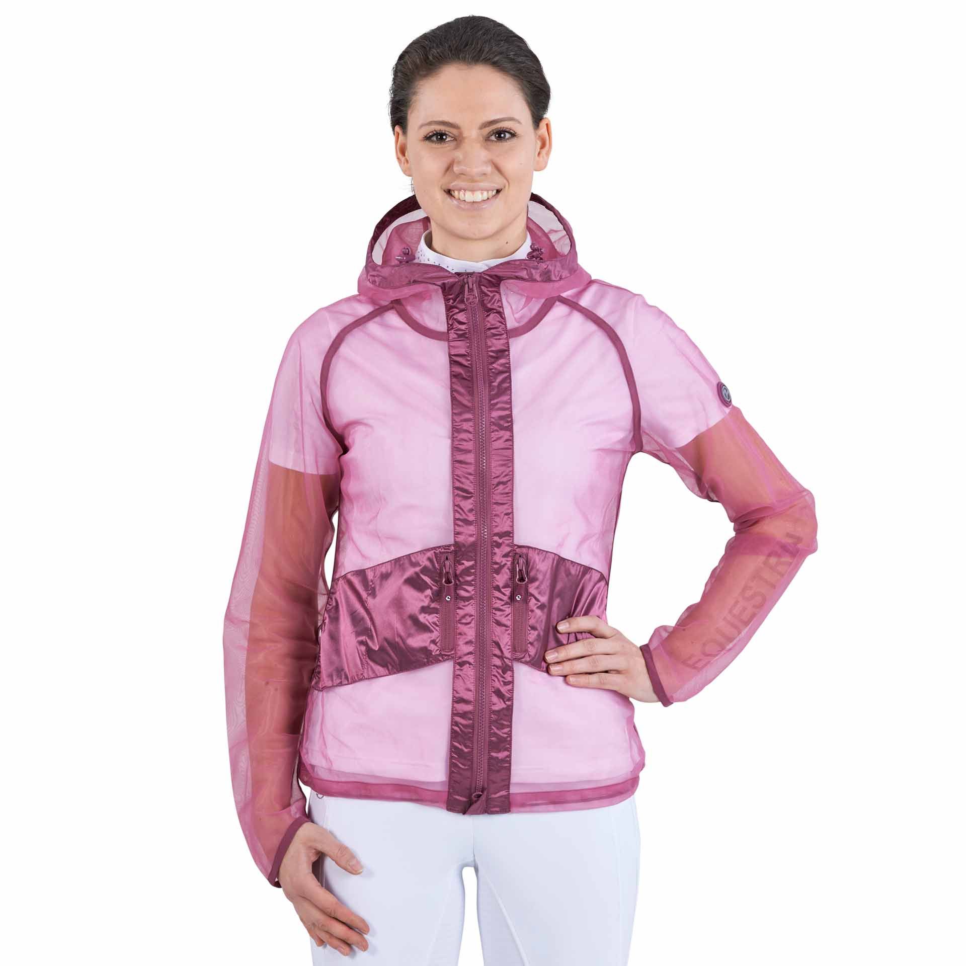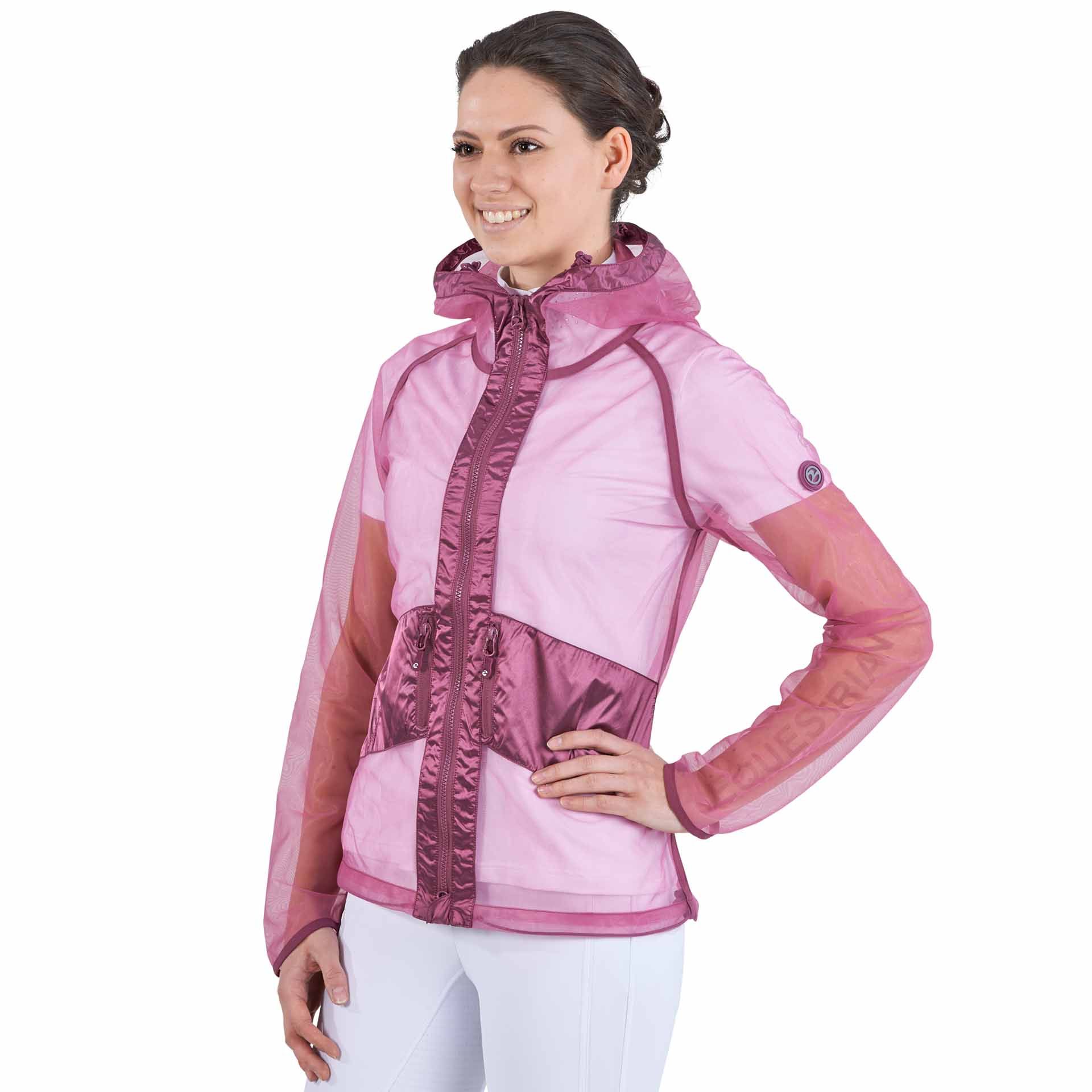 Questa giacca ha diverse funzionalità specifiche per i cavalieri: una zip principale a due vie con protezione per l'orlo e la sella per proteggere la pelle; una cappuccio regolabile che può, all'occorrenza, fornire una certa protezione anche nel viso; due capienti tasche con zip offrono spazio sufficiente per lo smartphone e piccoli oggetti a rischio di perdita; estremità delle maniche con polsini leggermente elastici in Lycra®; un cordoncino elastico regolabile individualmente all'occorrenza nella zona dell'anca per una vestibilità perfetta "a misura di cavallo".