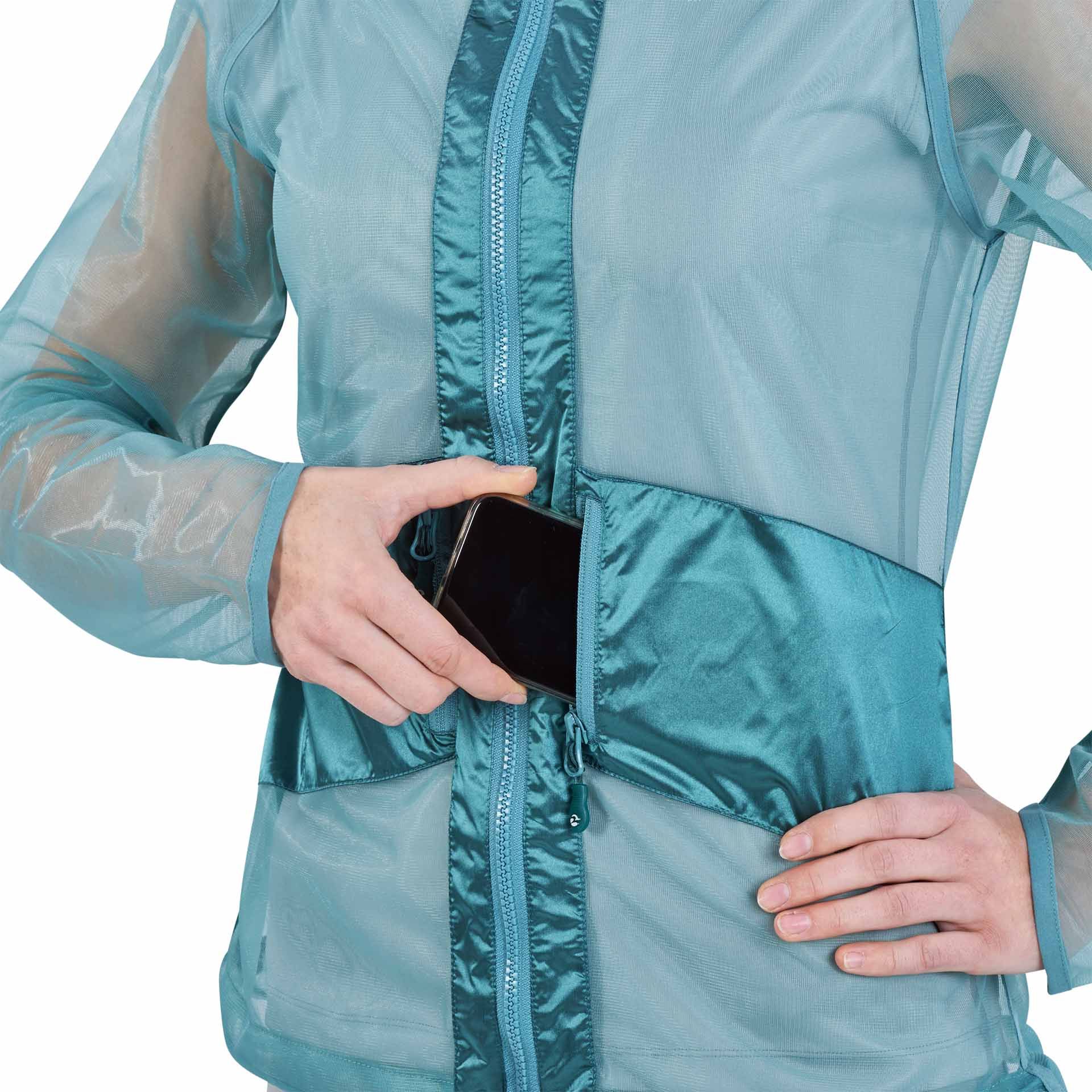 Inoltre, la Giacca Fly ha un design sportivo e femminile, con inserti lucidi sulla vita, la zip principale e il cappuccio. Il materiale della rete è piacevolmente morbido e leggero sulla pelle.