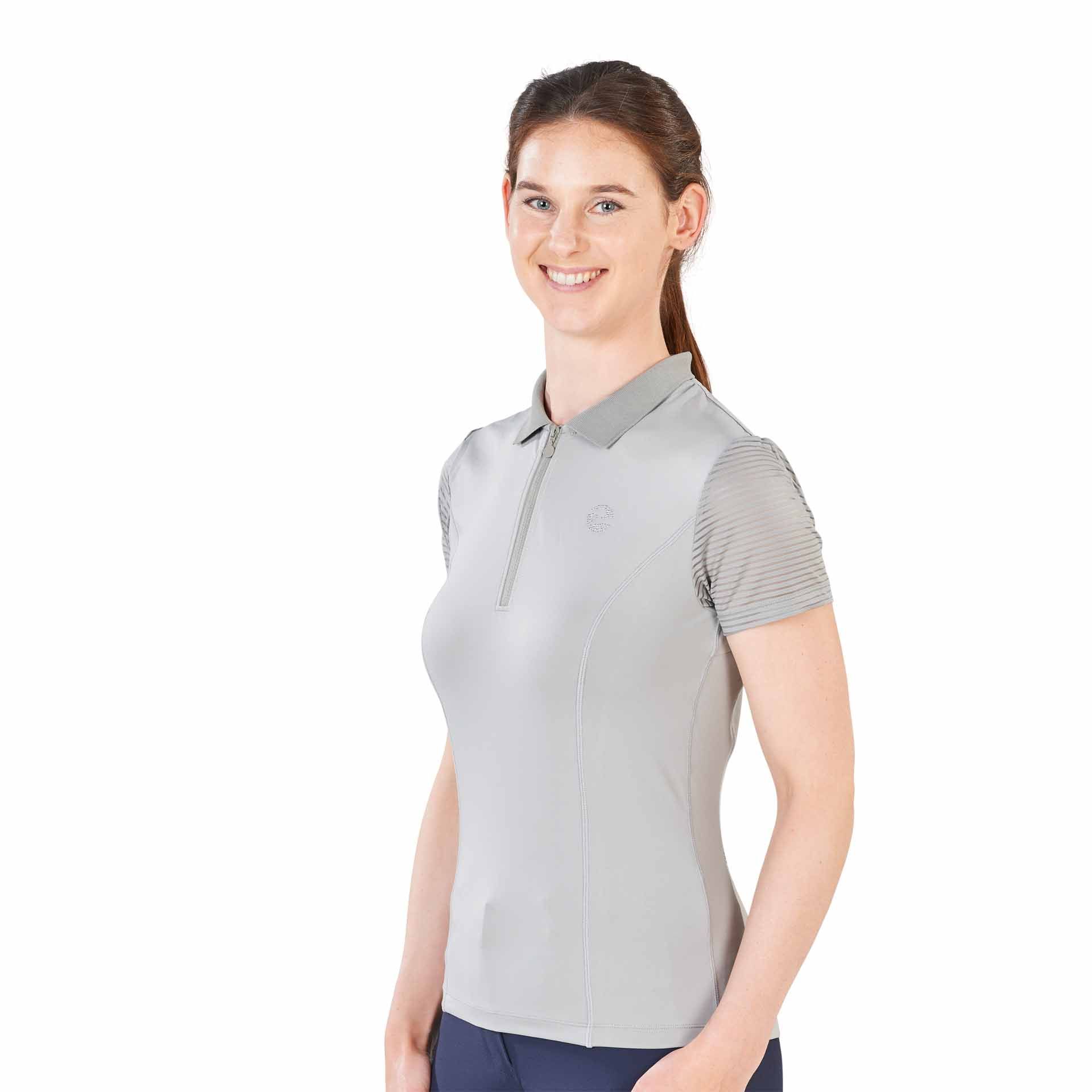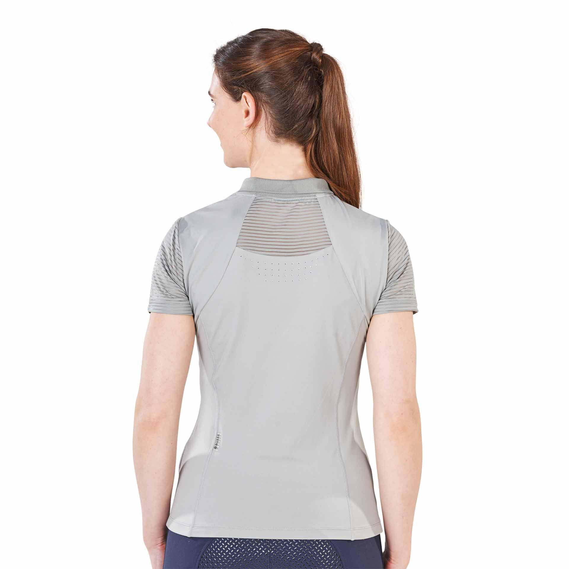 Questa polo presenta diverse funzionalità specifiche per i cavalieri: materiale funzionale in 4-Way-Stretch, soffice e ad asciugatura rapida, per un comfort ottimale e libertà di movimento durante la guida; tessuto a rete a righe traspirante sulle maniche e nella parte superiore della schiena, per un comfort climatico ottimale anche durante l'attività sportiva; cuciture flatlock per ridurre il gonfiore e l'abrasione indesiderati.
