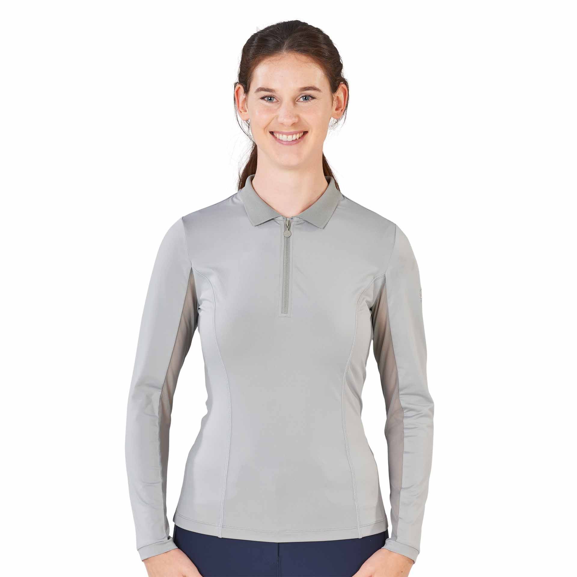 Questo modello presenta alcune specifiche funzionalità ideate per le esigenze delle cavallerizze. Il materiale, morbido ed elastico, assicura una asciugatura rapida e un comfort ottimale durante l'equitazione. Inoltre, gli inserti in tessuto a rete nella parte superiore della schiena e sotto le maniche garantiscono un clima confortevole anche durante l'attività sportiva. Le cuciture flatlock riducono l'abrasione e il gonfiore indesiderati.