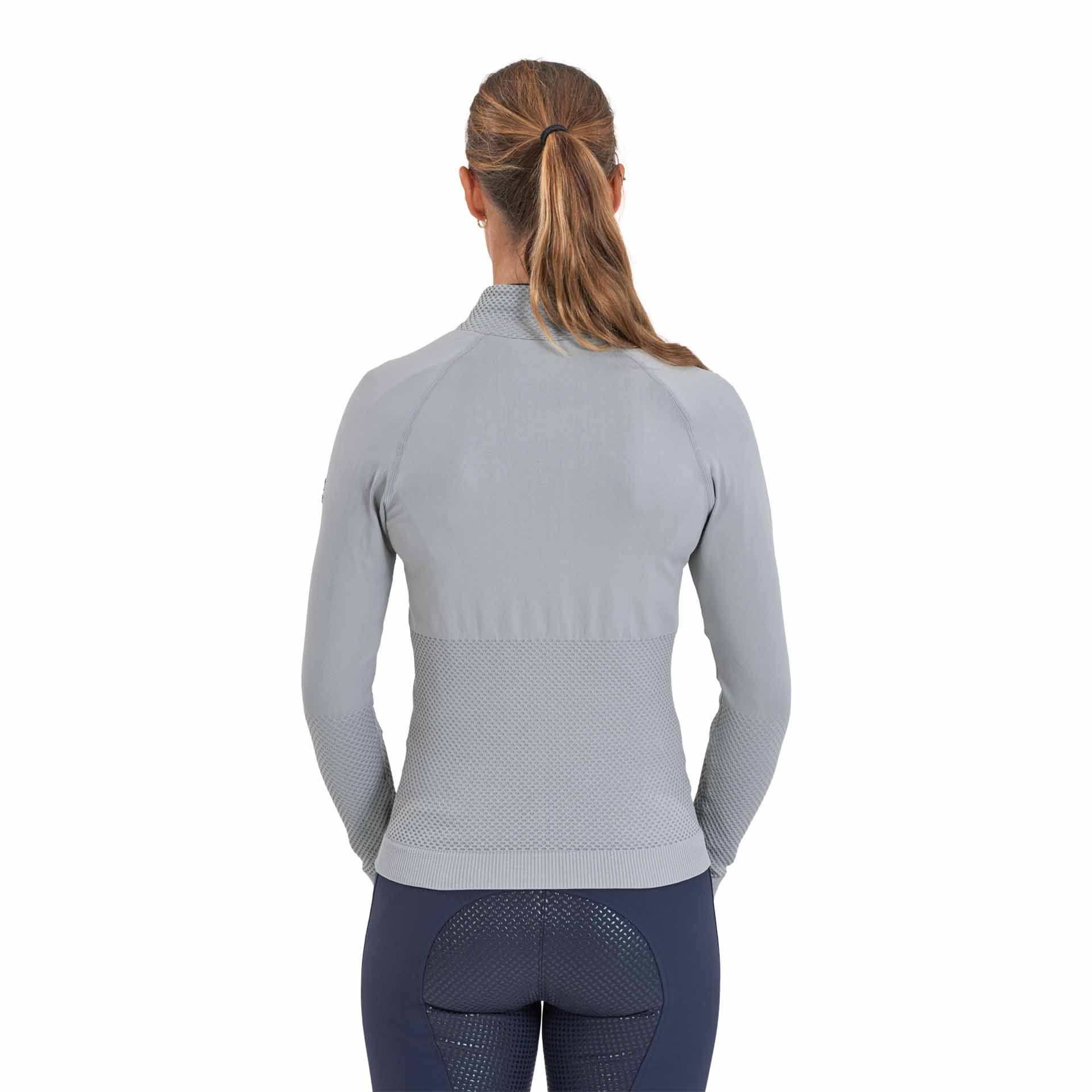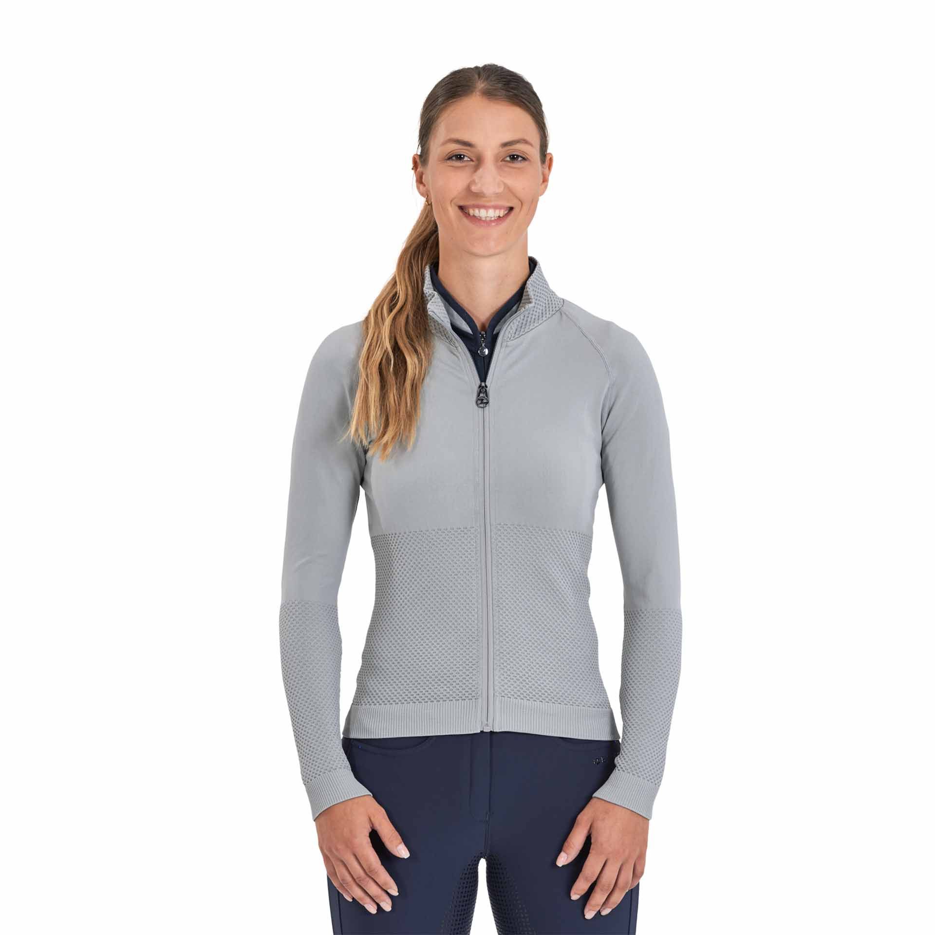 La Giacca Pria presenta varie funzionalità specifiche per i cavalieri. Questa giacca offre un comfort di maglia morbida, aderente e senza cuciture, assicurando al contempo una performance di movimento altamente elastica. Una chiusura lampo delicata all'avanguardia accentua l'estetica sportiva chic di questa giacca.