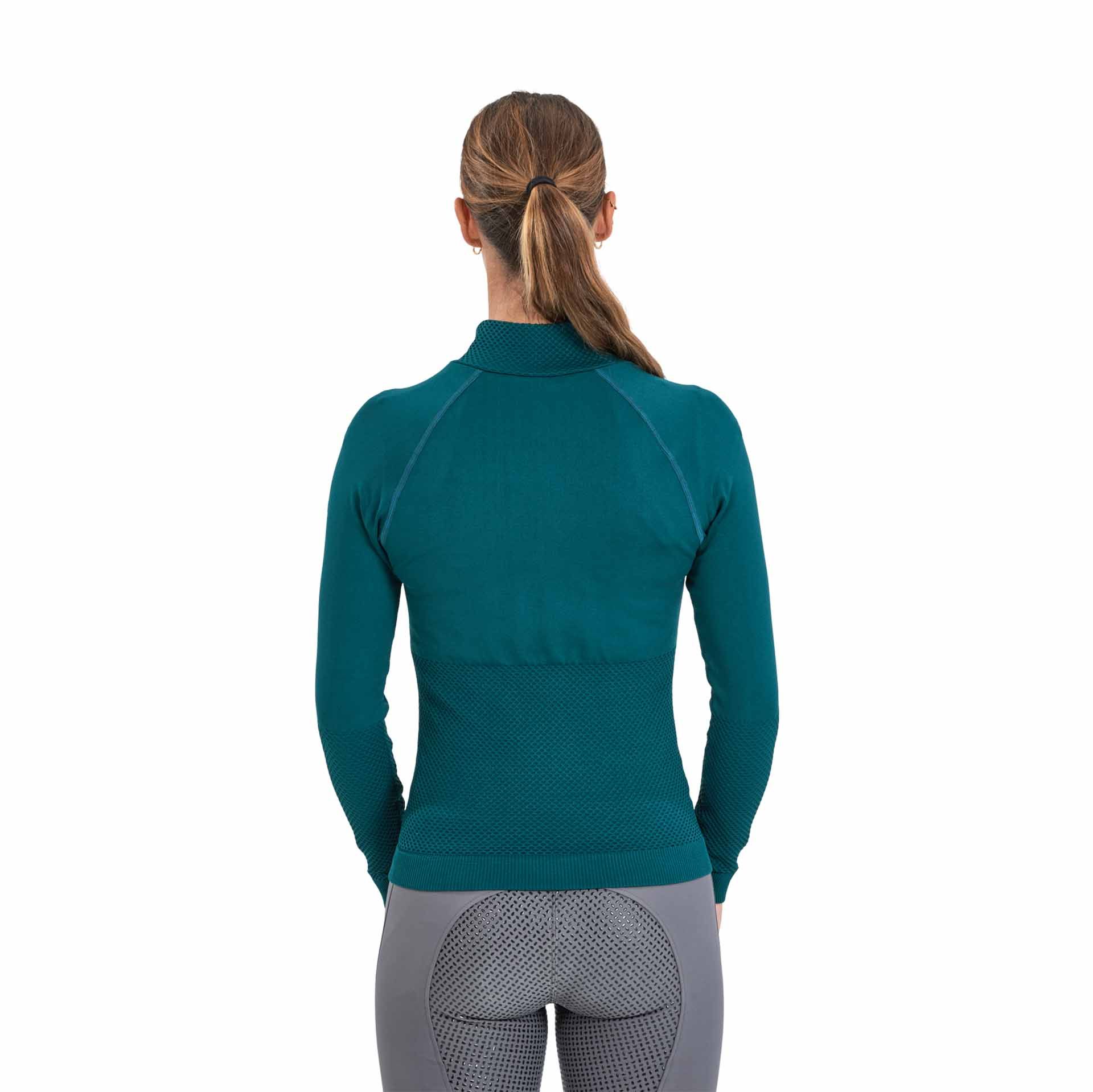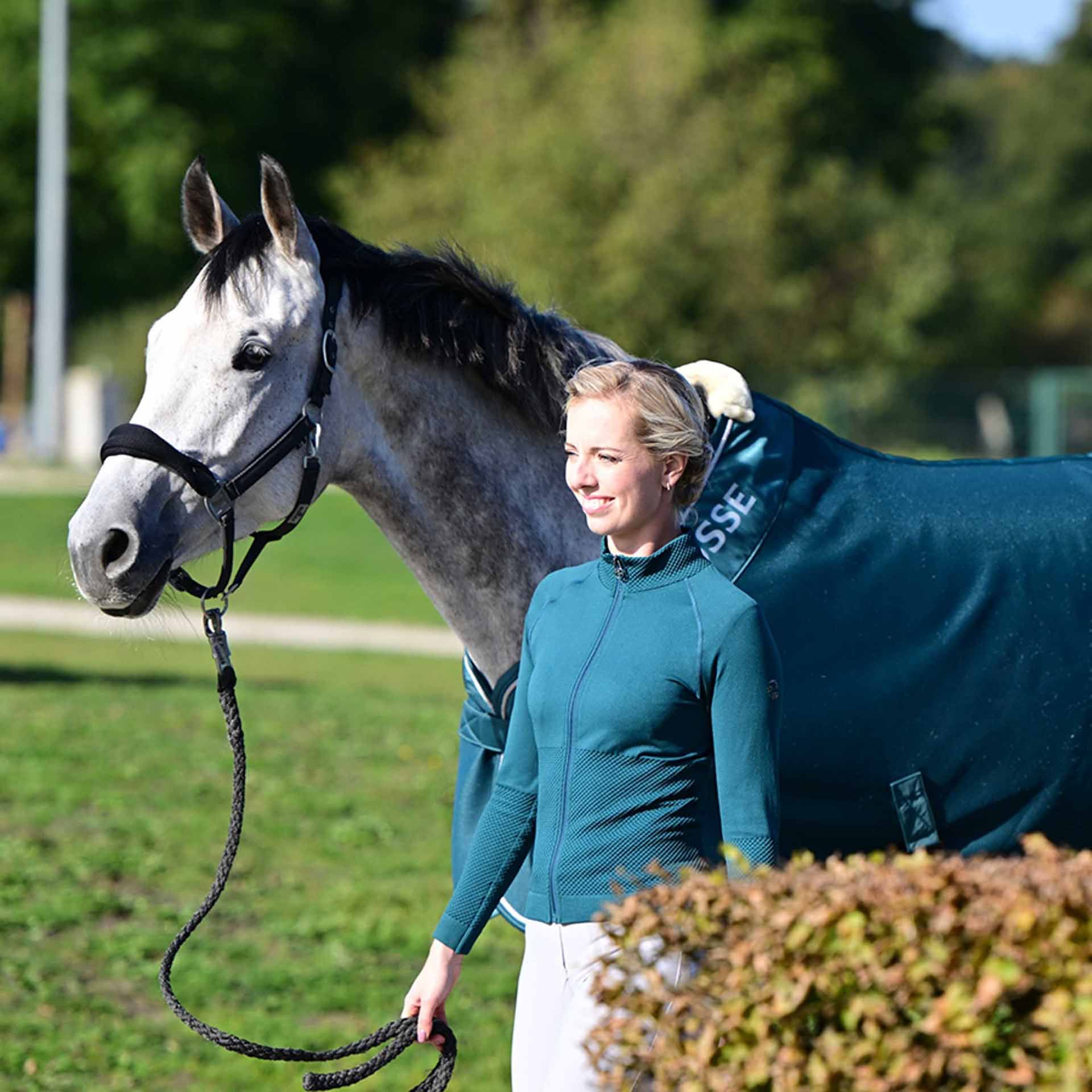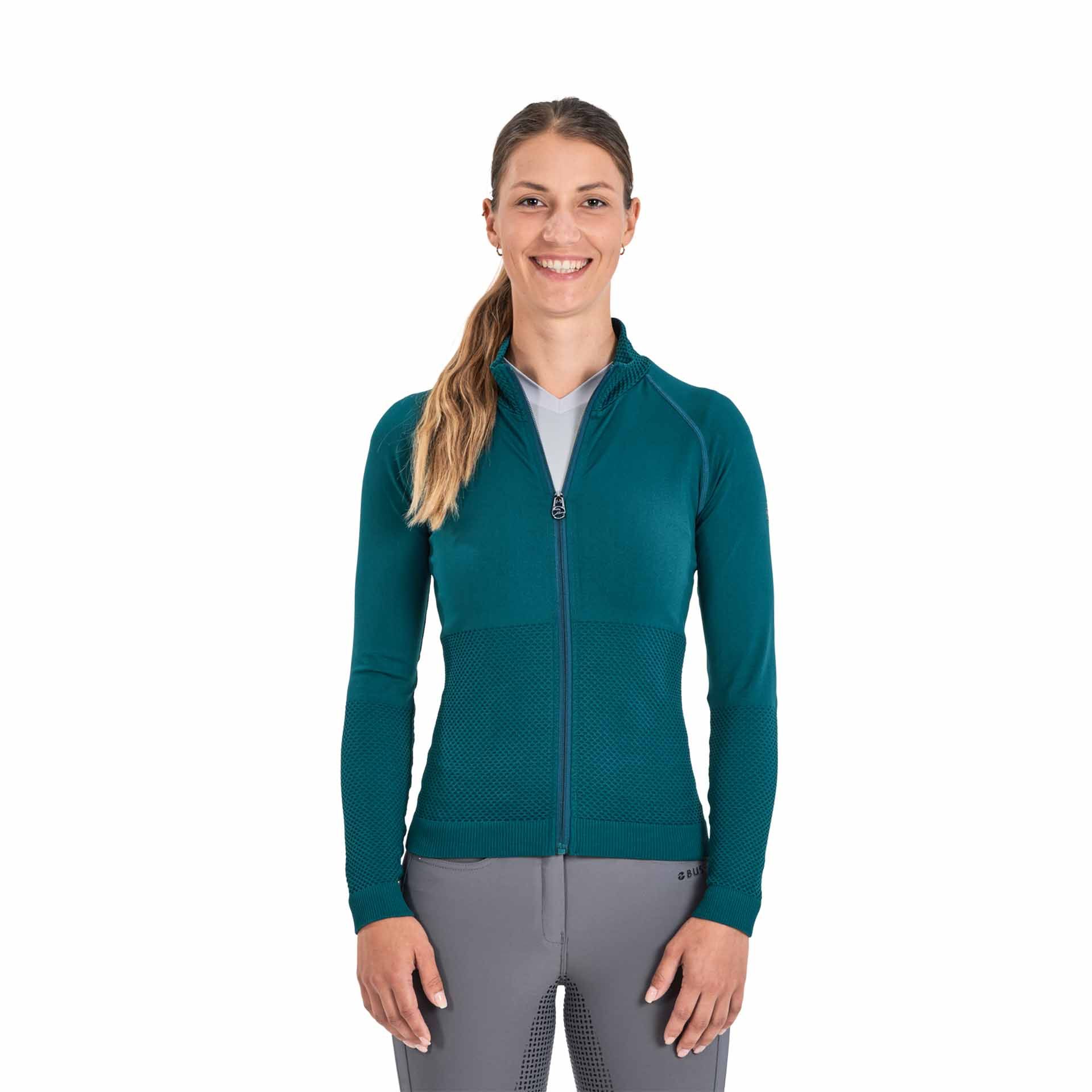 La Giacca Pria presenta varie funzionalità specifiche per i cavalieri. Questa giacca offre un comfort di maglia morbida, aderente e senza cuciture, assicurando al contempo una performance di movimento altamente elastica. Una chiusura lampo delicata all'avanguardia accentua l'estetica sportiva chic di questa giacca.