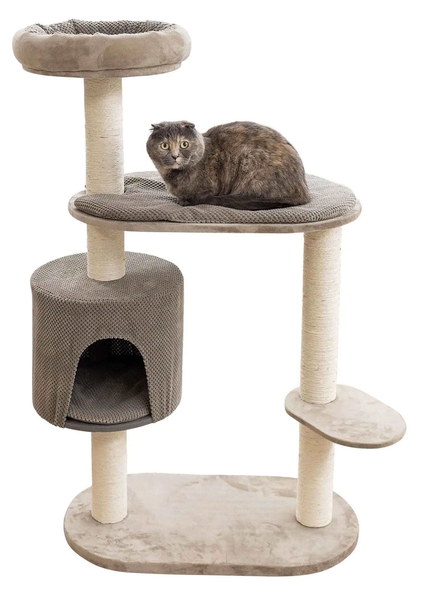 Risposta: L'Albero tiragraffi Giselle taupe ha colonne rivestite in sisal ideali per la cura delle unghie del tuo gatto.