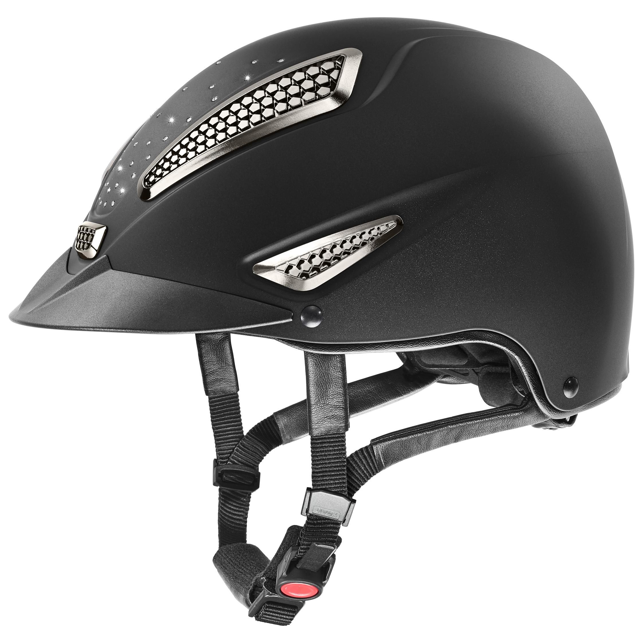 Il casco da equitazione uvex perfexxion III grace mat unisce un design elegante alle massime funzionalità e sicurezza, ideale per i cavalieri che non rinunciano allo stile. Con 38 cristalli Swarovski® inseriti a mano, questo casco offre un look lussuoso. Le griglie di ventilazione cromate, le coperture delle cinghie in materiali pregiati e il bordo in ecopelle conferiscono un aspetto esclusivo. Per una maggiore sicurezza, il casco è tagliato profondamente sulla nuca e il dynamic ventilation system garantisce una circolazione dell'aria ottimale, mantenendo un clima perfetto all'interno del casco.