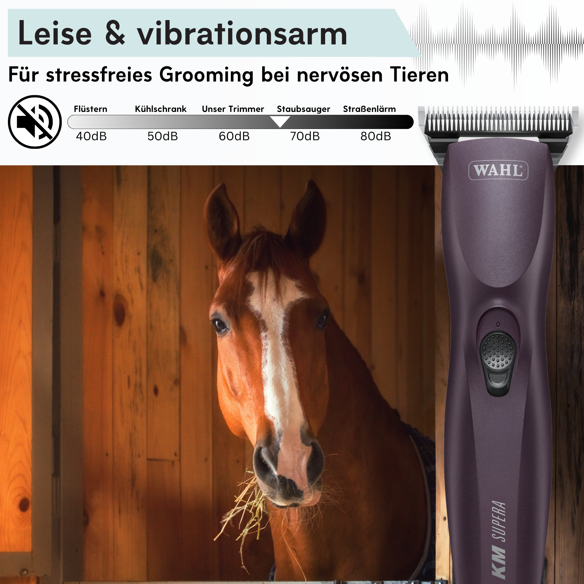 Sì, la WAHL KM Supera lavora a soli 68 dB, rendendo la tosatura più tranquilla e meno stressante per i cavalli nervosi.