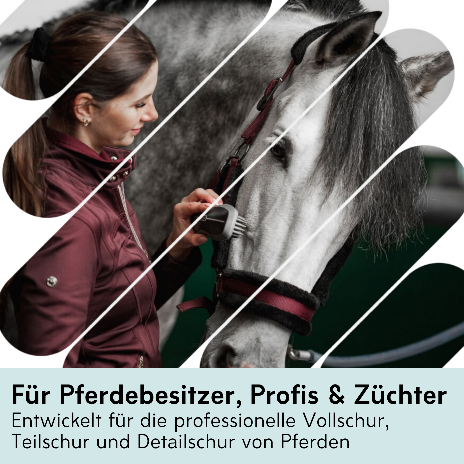 Questa tosatrice è particolarmente adatta per toelettatori, proprietari e allevatori di cavalli che esigono il massimo dalla loro attrezzatura. Nel set è inclusa anche la popolare spazzola MagicBrush, che facilita la pulizia del manto del cavallo prima e dopo la tosatura. I due batterie Li-Ion offrono una durata illimitata grazie all'uso alternato, con ogni batteria che fornisce fino a 3 ore di autonomia.