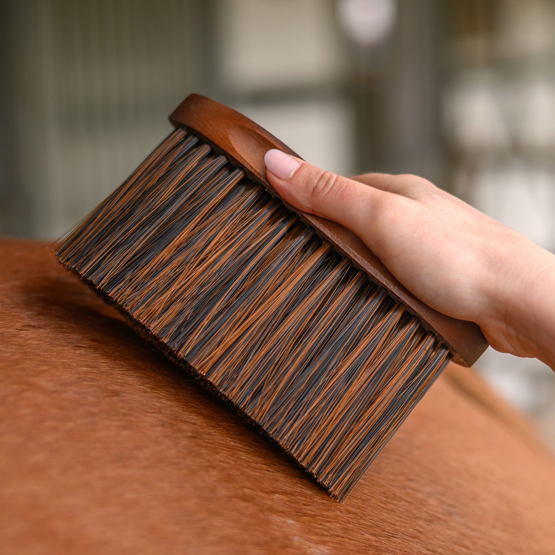 Con setole sintetiche morbide e lunghissime.
