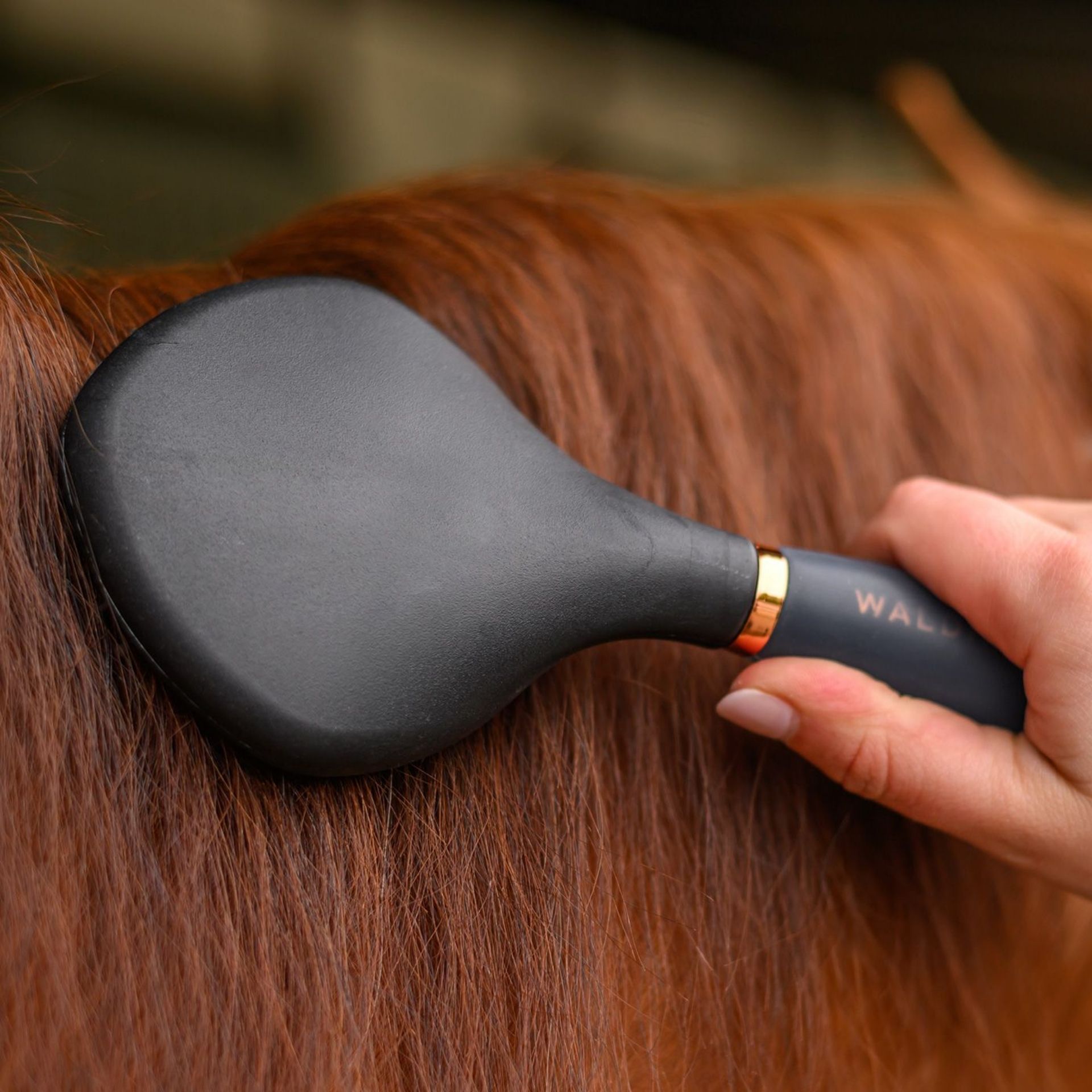 Brusca dalla bella forma per prendersi delicatamente cura della criniera. Con denti arrotondati. L"impugnatura ergonomica in gel si adatta perfettamente alla vostra mano.