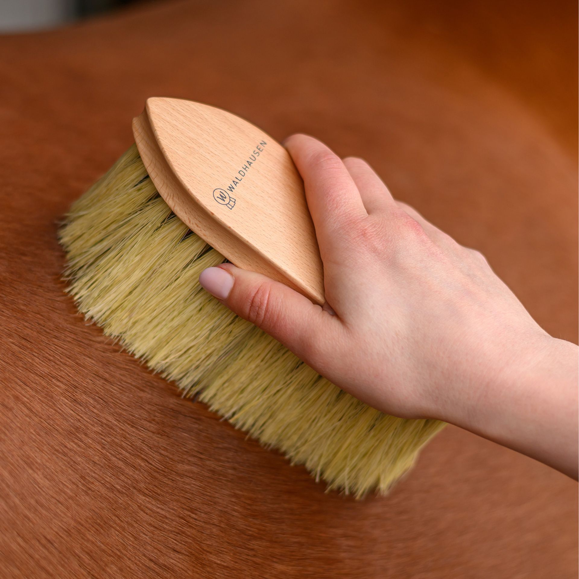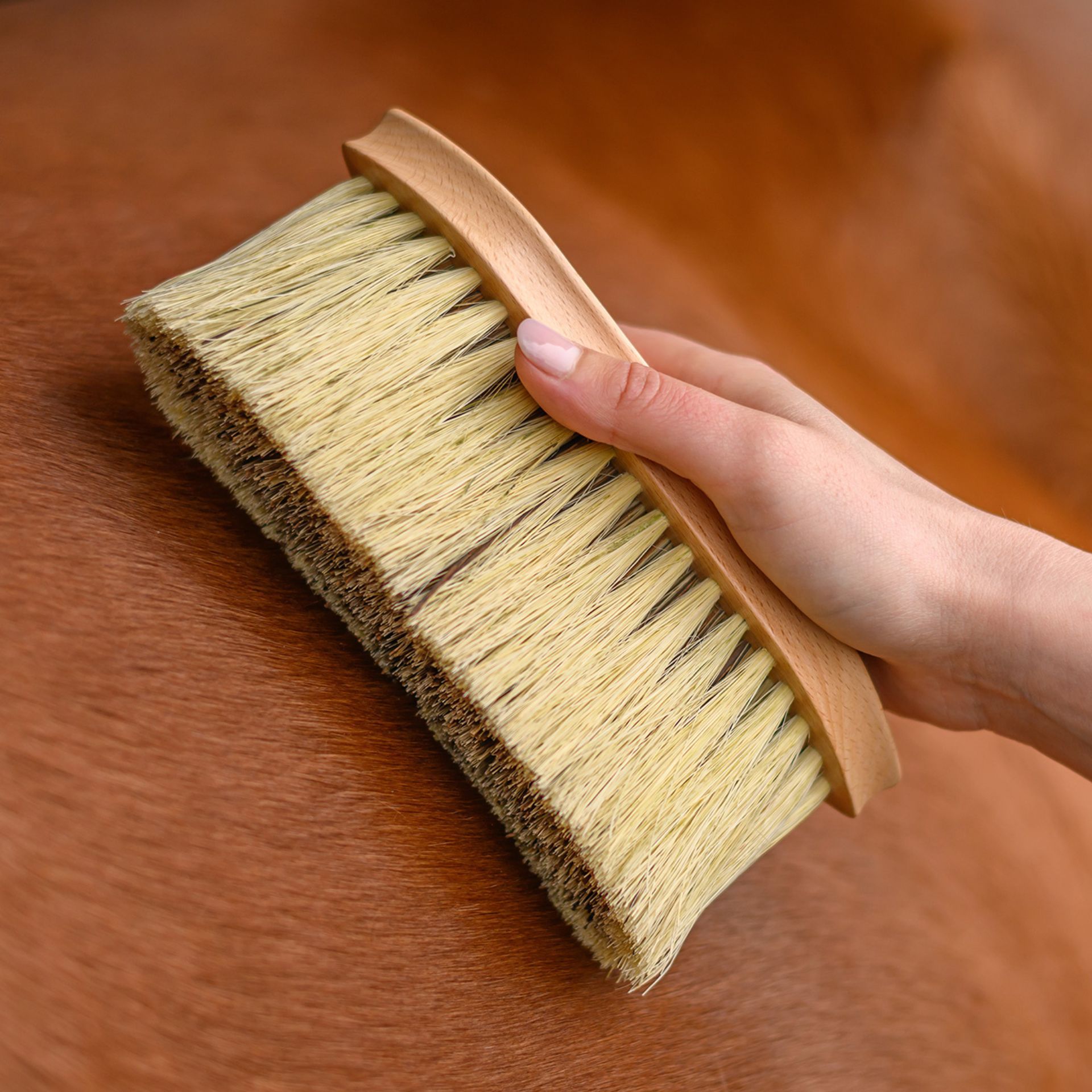 Questa brusca per manto con setole rigide serve per rimuovere lo sporco ostinato grazie alle sue fibre naturali extra dure. Inoltre, il margine morbido di queste fibre naturali permette di rimuovere la polvere dal mantello. Pertanto, se ne raccomanda l"utilizzo prima di una pulizia accurata o per una pulizia più veloce ed è un accessorio fondamentale per la cura del cavallo. Adatta anche per i cavalli che sono sensibili sulle gambe e nel periodo della muta del pelo. Grazie all"utilizzo di materiali naturali, questa spazzola è delicata sulla pelle e sul manto. I materiali naturali non creano la carica elettrostatica.