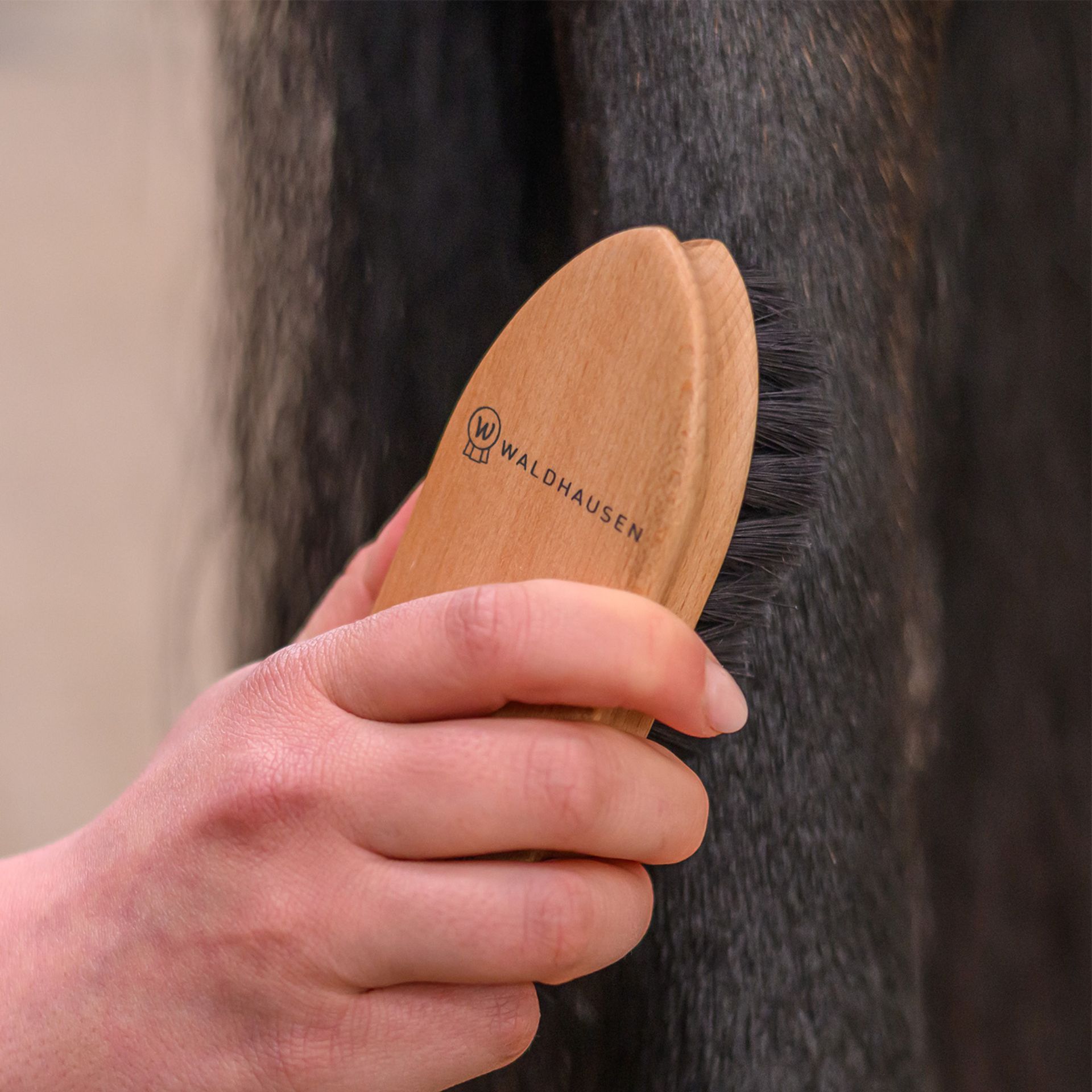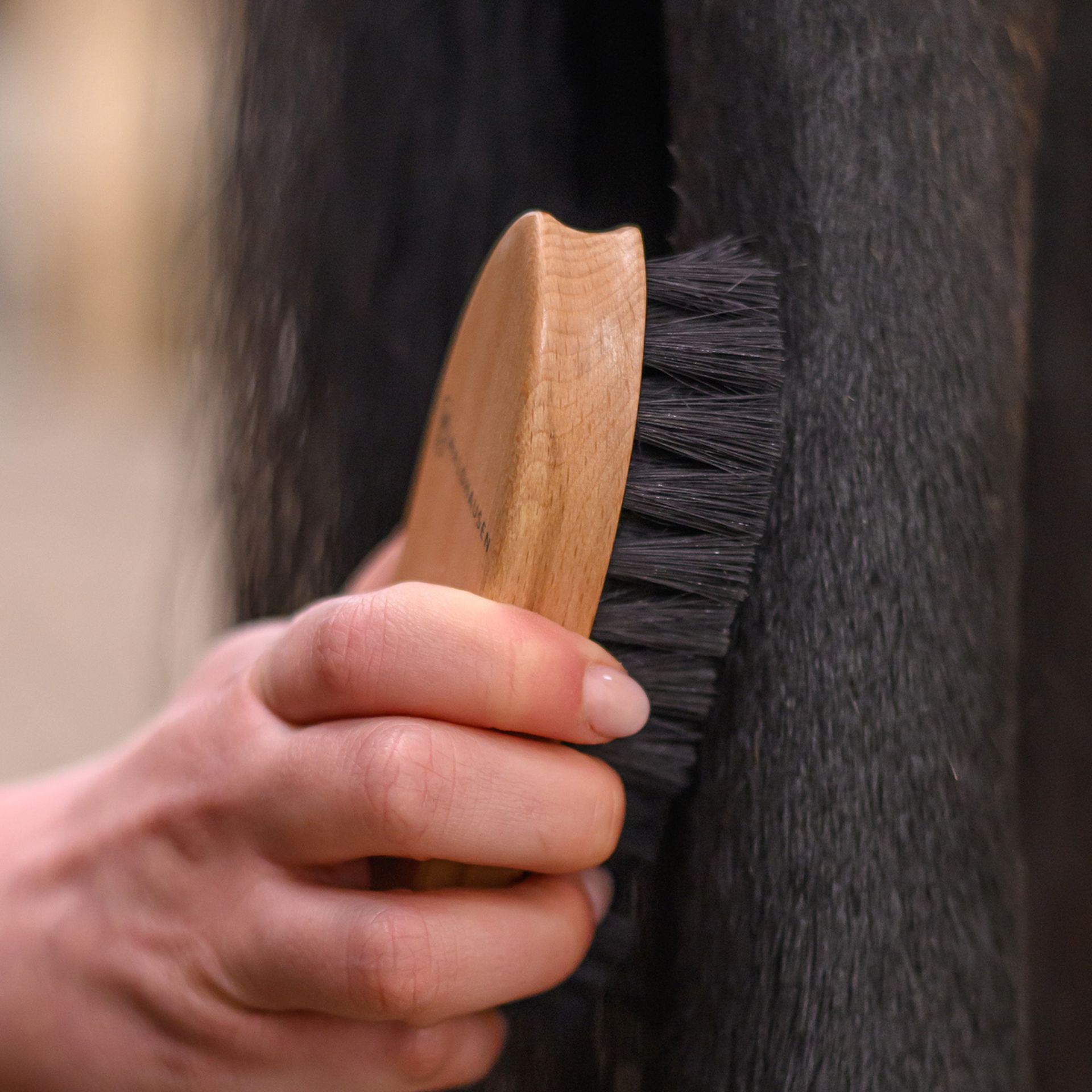 Le fibre di cocco rigide rimuovono in modo accurato anche le incrostazioni più ostinate sul corpo o sugli arti del cavallo. Le macchie di erba non sono più un problema.