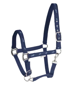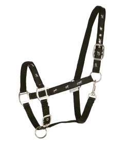 Capezza con bordura di cavallini. Capezzina e sovracapo con morbido rivestimento. Fibbieria resistente e lucida. Sovracapo e sottomento regolabili. Da abbinare alle lunghine 50463.. e 50442.