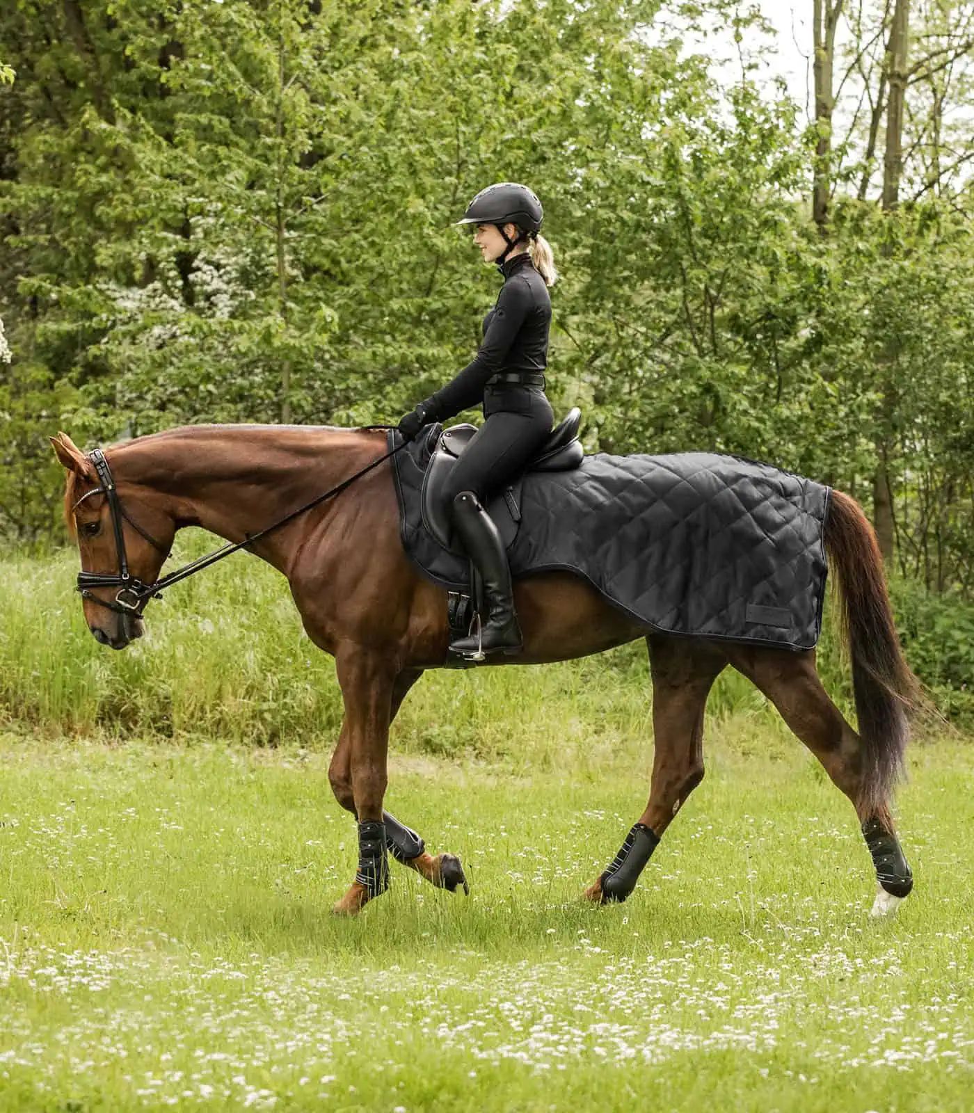 Pregiata coperta coprireni con imbottitura in pelliccia di coniglio sintetica perfetta per le giornate fredde. La pelliccia di coniglio mantiene il calore del corpo del cavallo, è particolarmente morbida ed evita fastidiosi sfregamenti. È provvista di una resistente chiusura a strappo al garrese e di asole in metallo per poter fissare la groppiera.