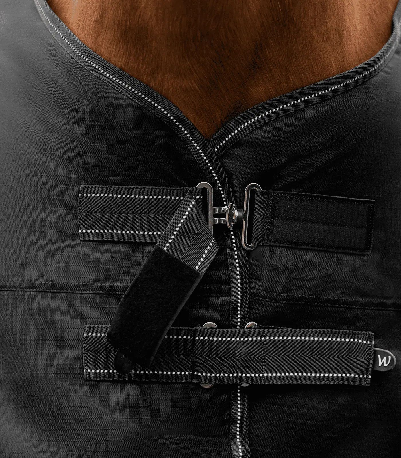 Con la coperta outdoor Arctic di Waldhausen potete essere certi che il vostro cavallo è protetto anche in caso di condizioni meteo avverse. La fodera interna antibatterica garantisce il massimo comfort. Le due chiusure frontali a T assicurano una vestibilità ottimale e prevengono un eventuale scivolamento. La banda con i dettagli riflettenti aumenta la sicurezza in caso di scarse condizioni di illuminazione. Gli ampi soffietti consentono al cavallo di avere la massima libertà di movimento, mentre le cinghie incrociate offrono una maggiore stabilità. Il materiale esterno da 600 denari offre una barriera resistente contro vento e maltempo.