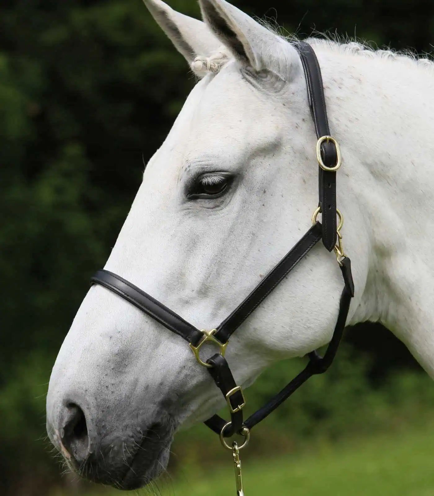 Robusta e lineare capezza con rivestimento su capezzina e sovracapo. Fibbieria ottonata e sovracapo e sottomento regolabili.